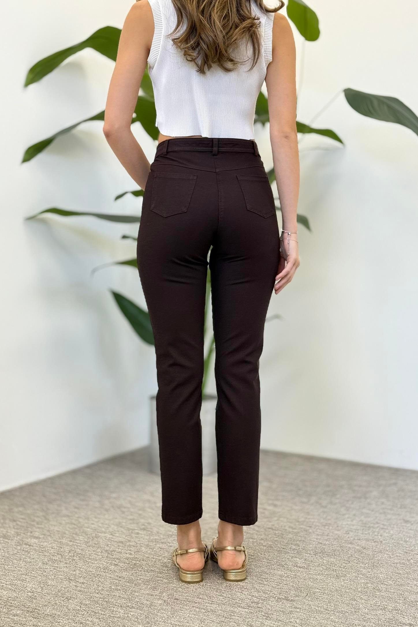 Sentez 5532 Kanvas Dar Paça Pantolon - Kahve (361328904)