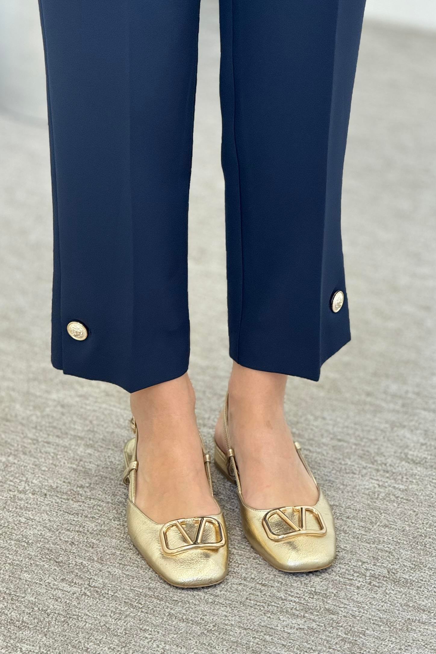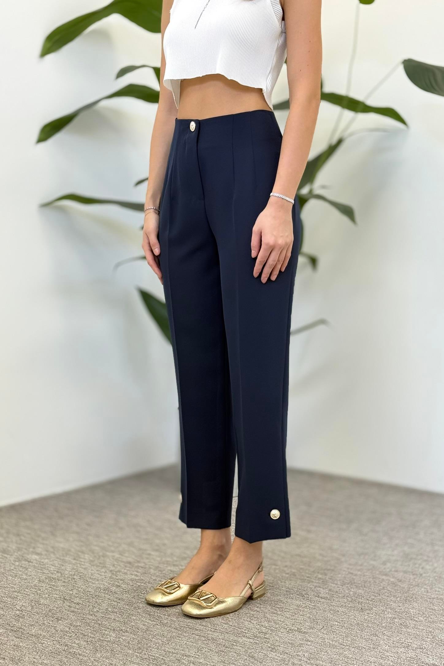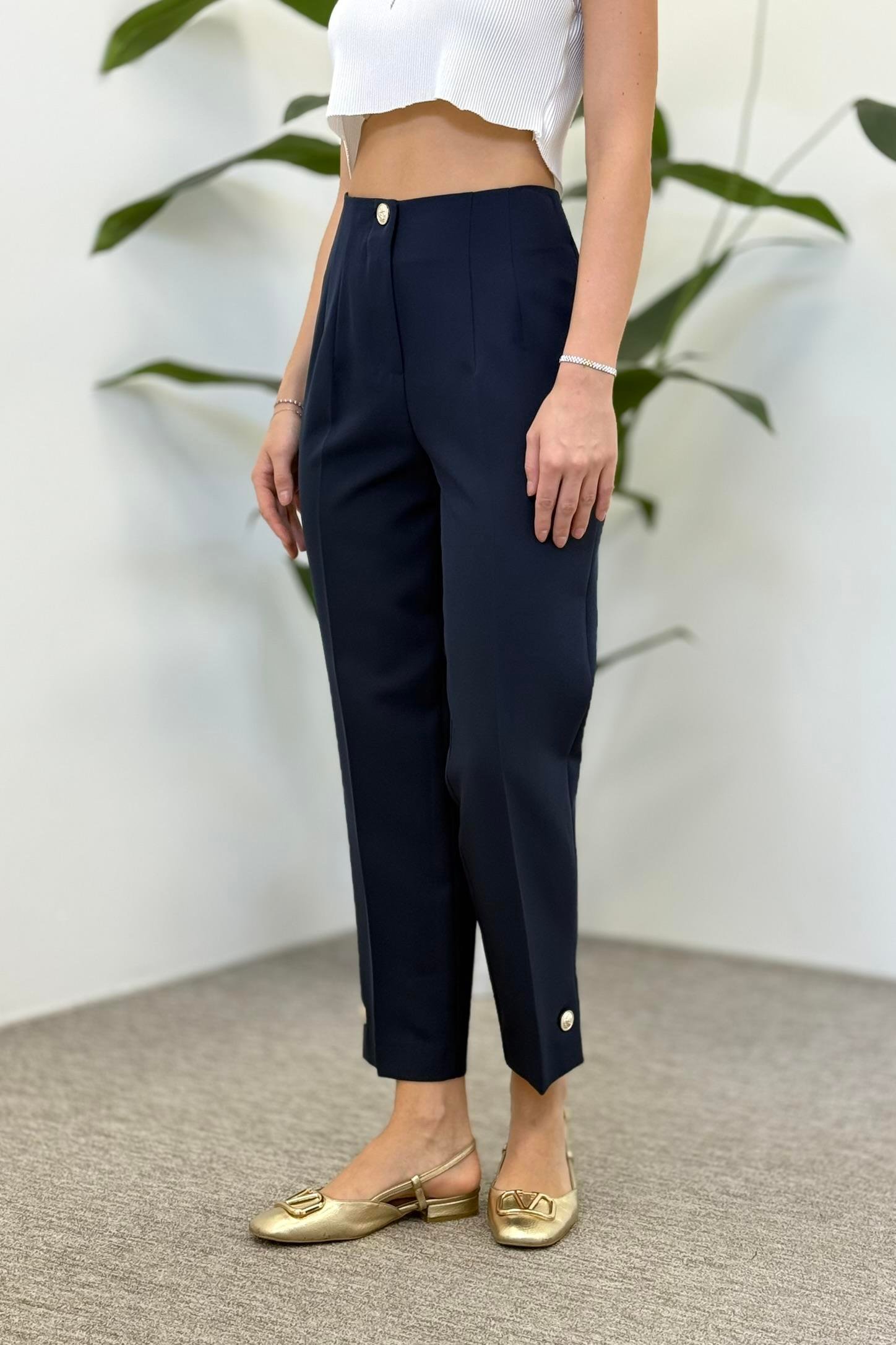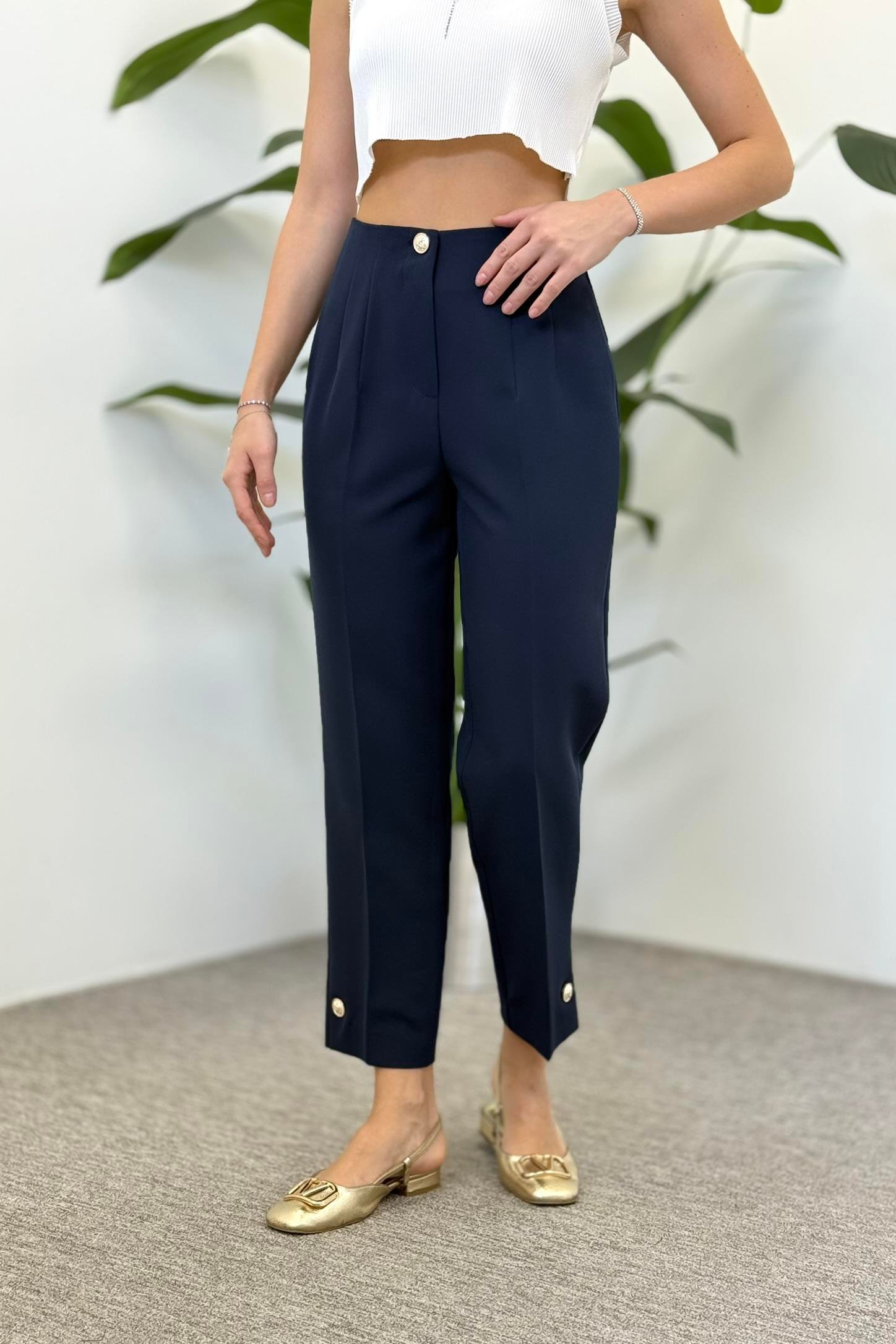 Sentez Sentez 5566 Paradise Paça Düğme Pensli Pantolon - Lacivert  Pantolon