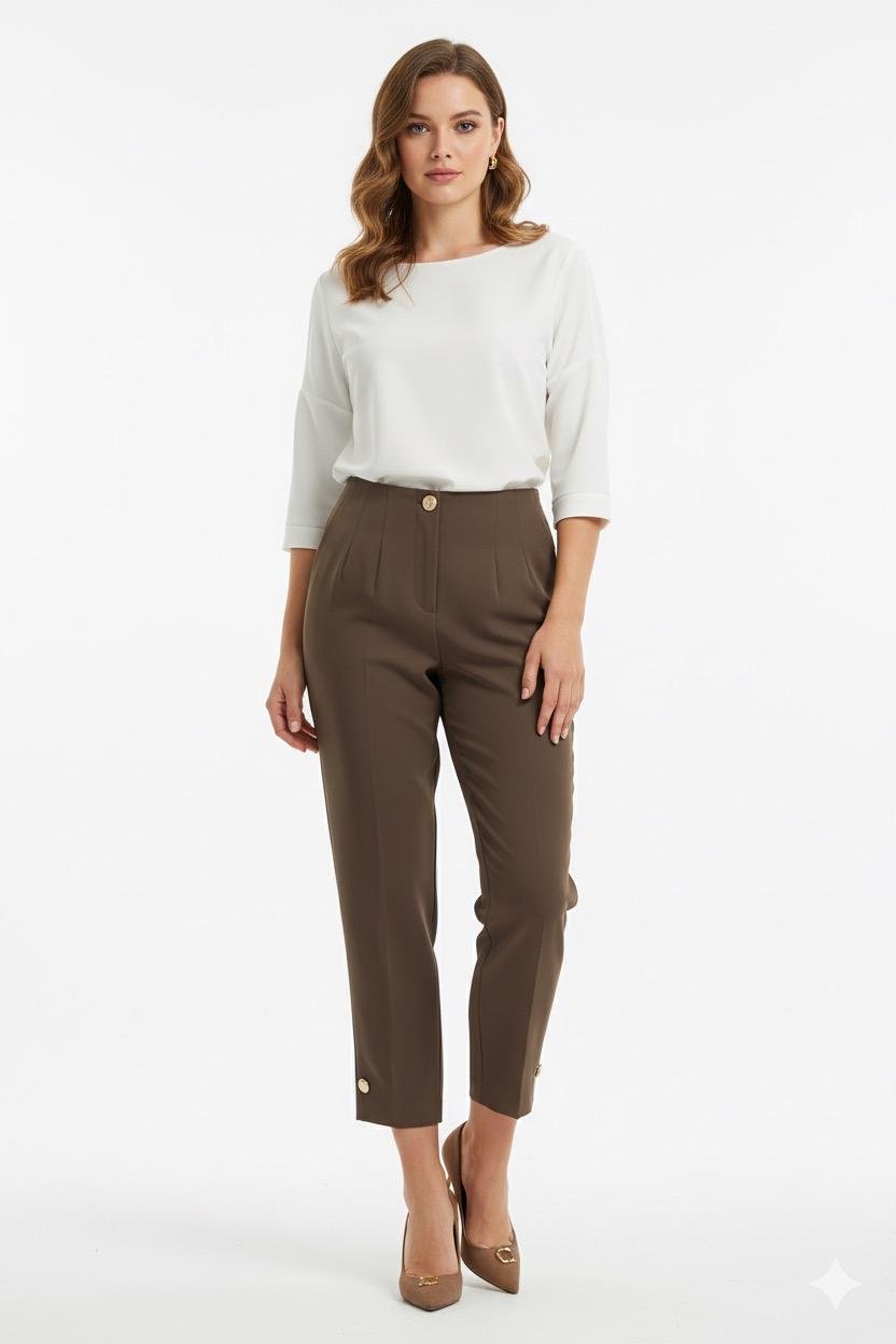 Sentez 5566 Paradise Paça Düğme Pensli Pantolon - Vizon