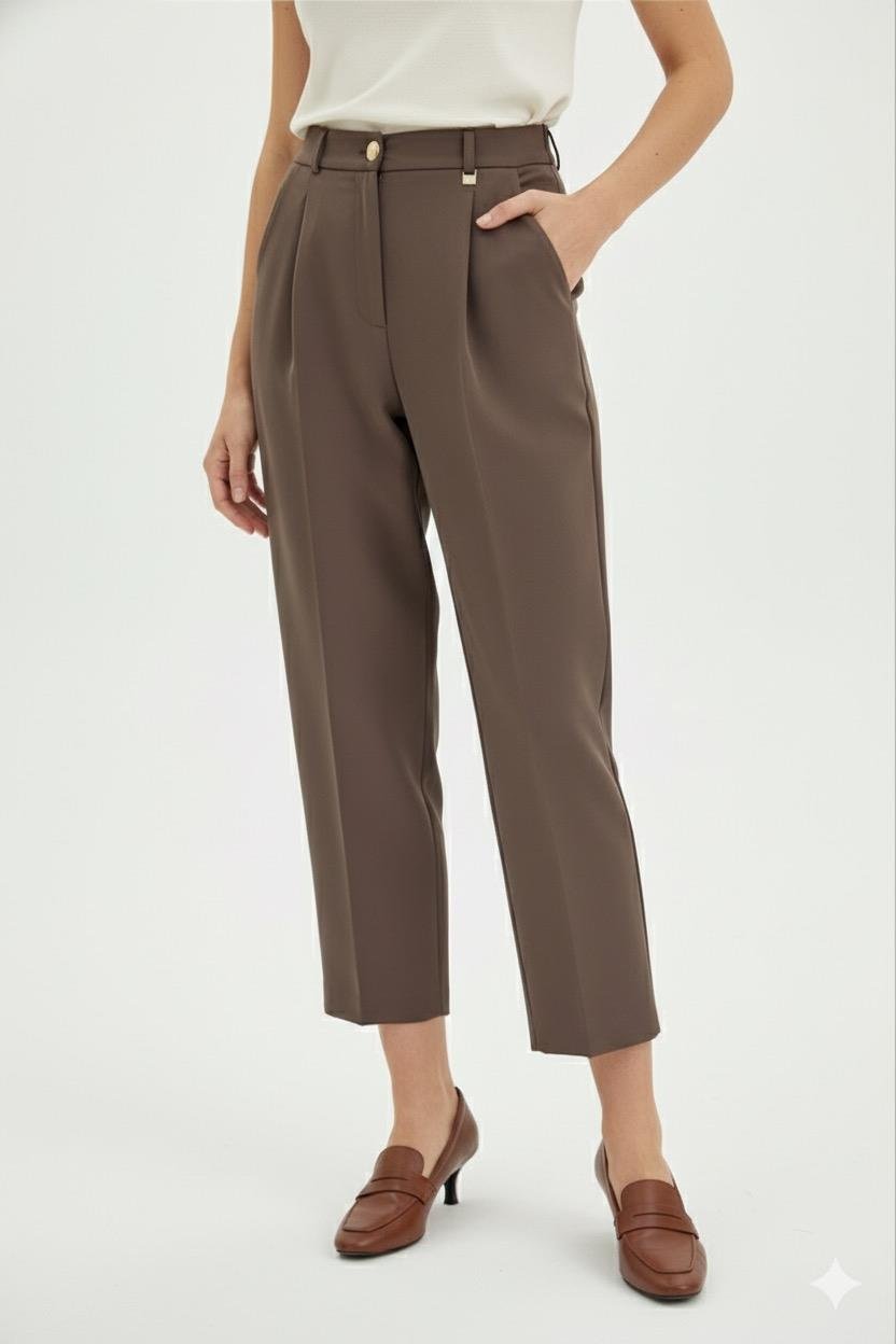 Sentez 5567 Arkası Lastikli Pileli Pantolon - Vizon