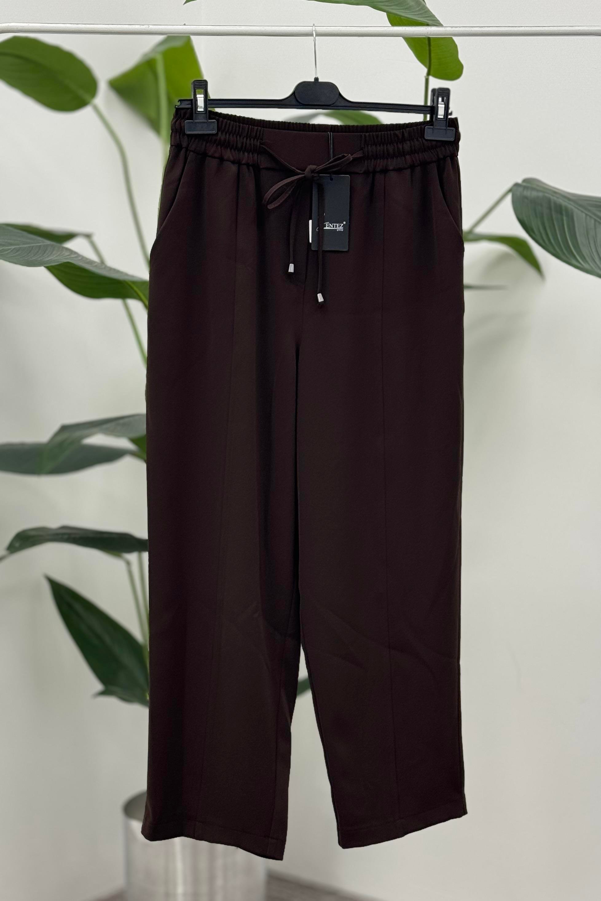 Sentez 5618 Elegance Beli Lastikli Pantolon - Kahve