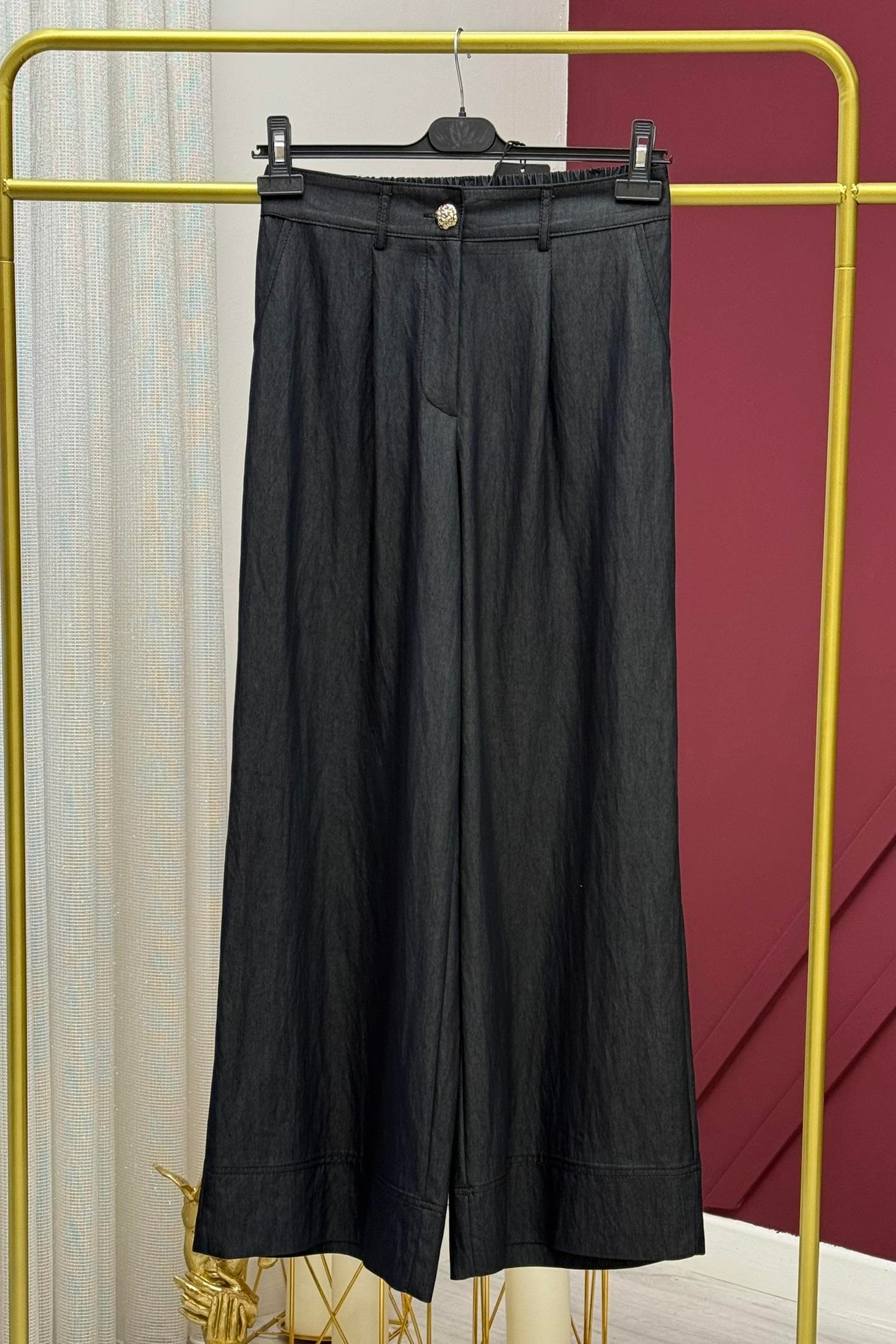 Sentez 5636 Abelia Kısa Geniş Paça Pantolon - Siyah Füme (461328105)