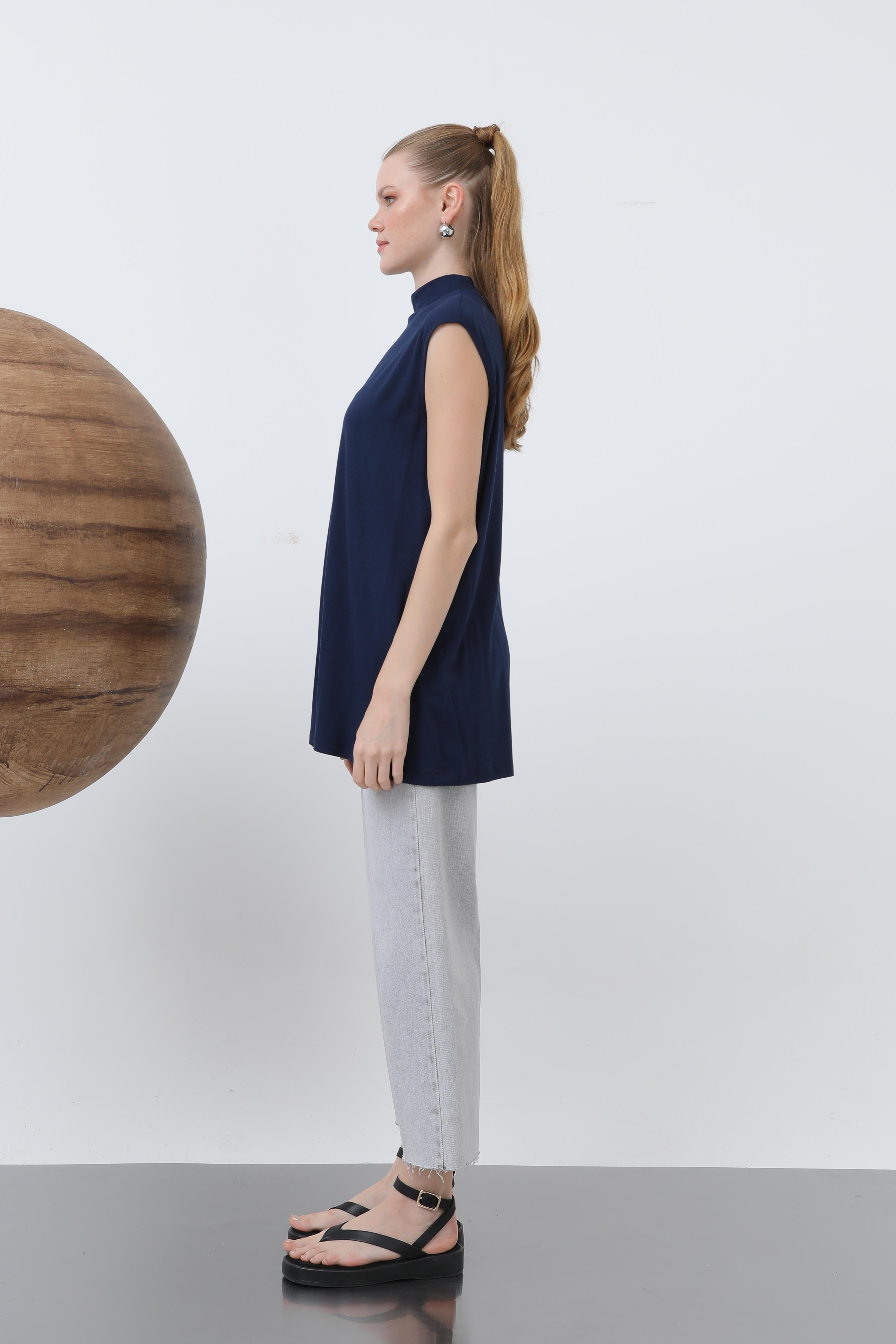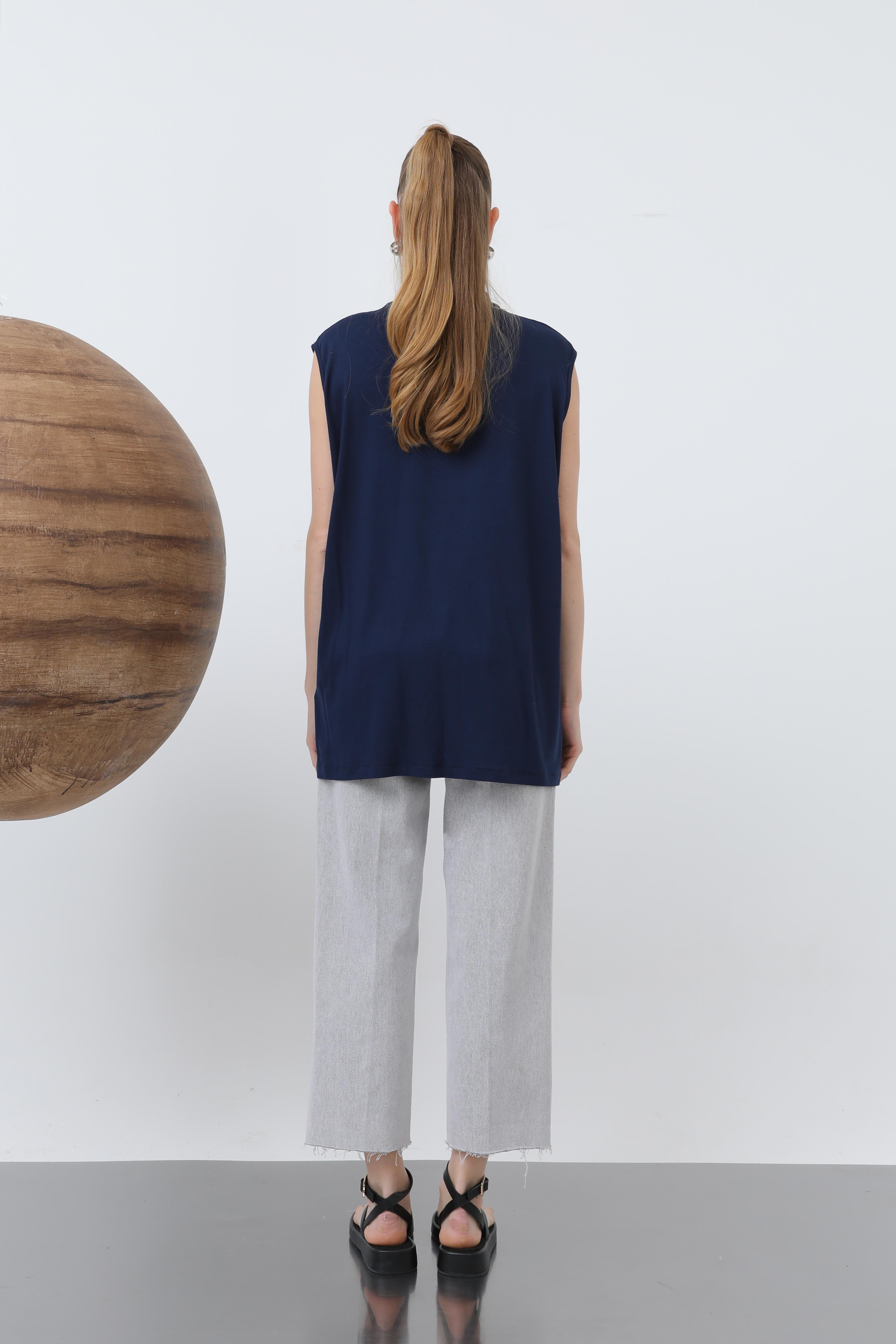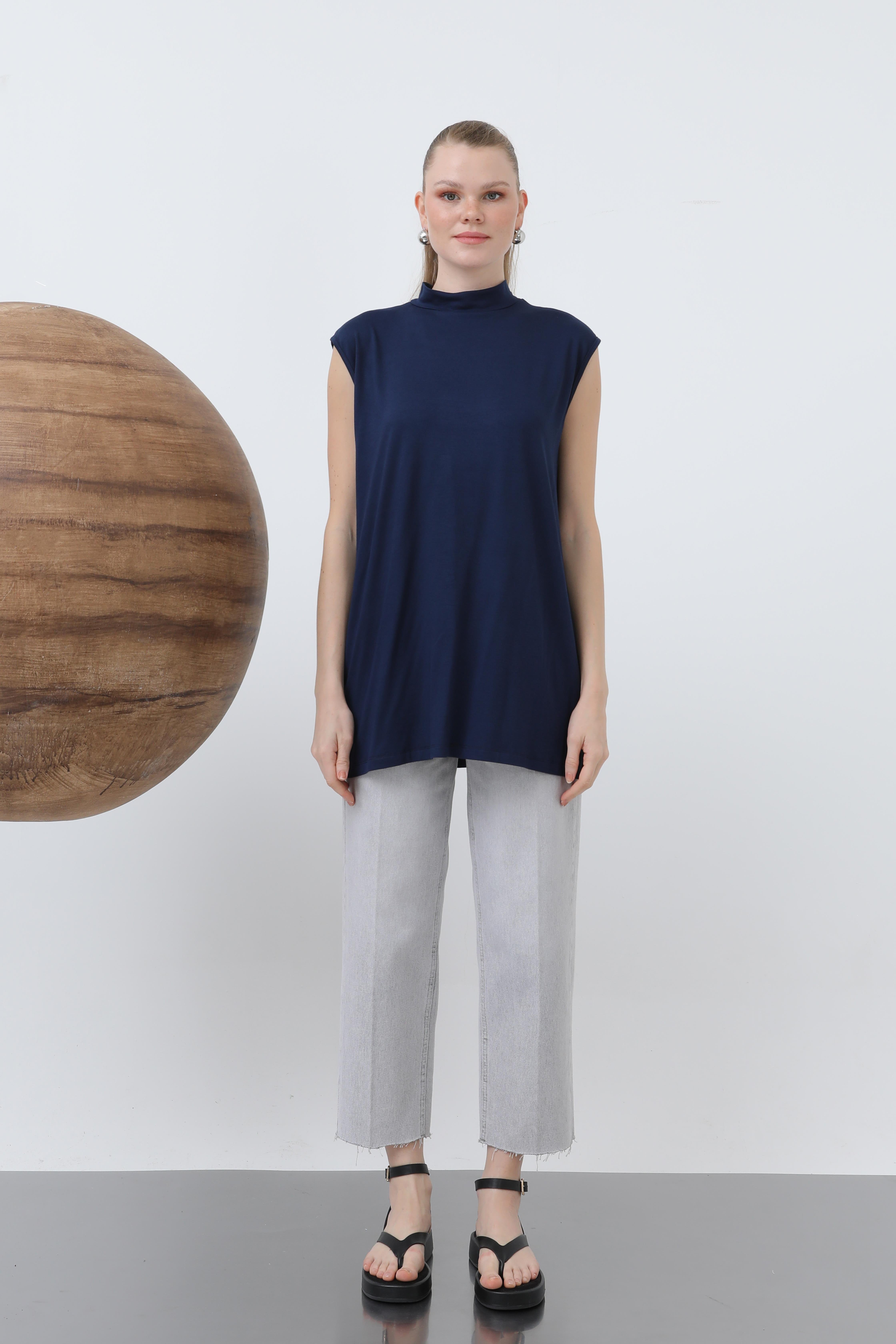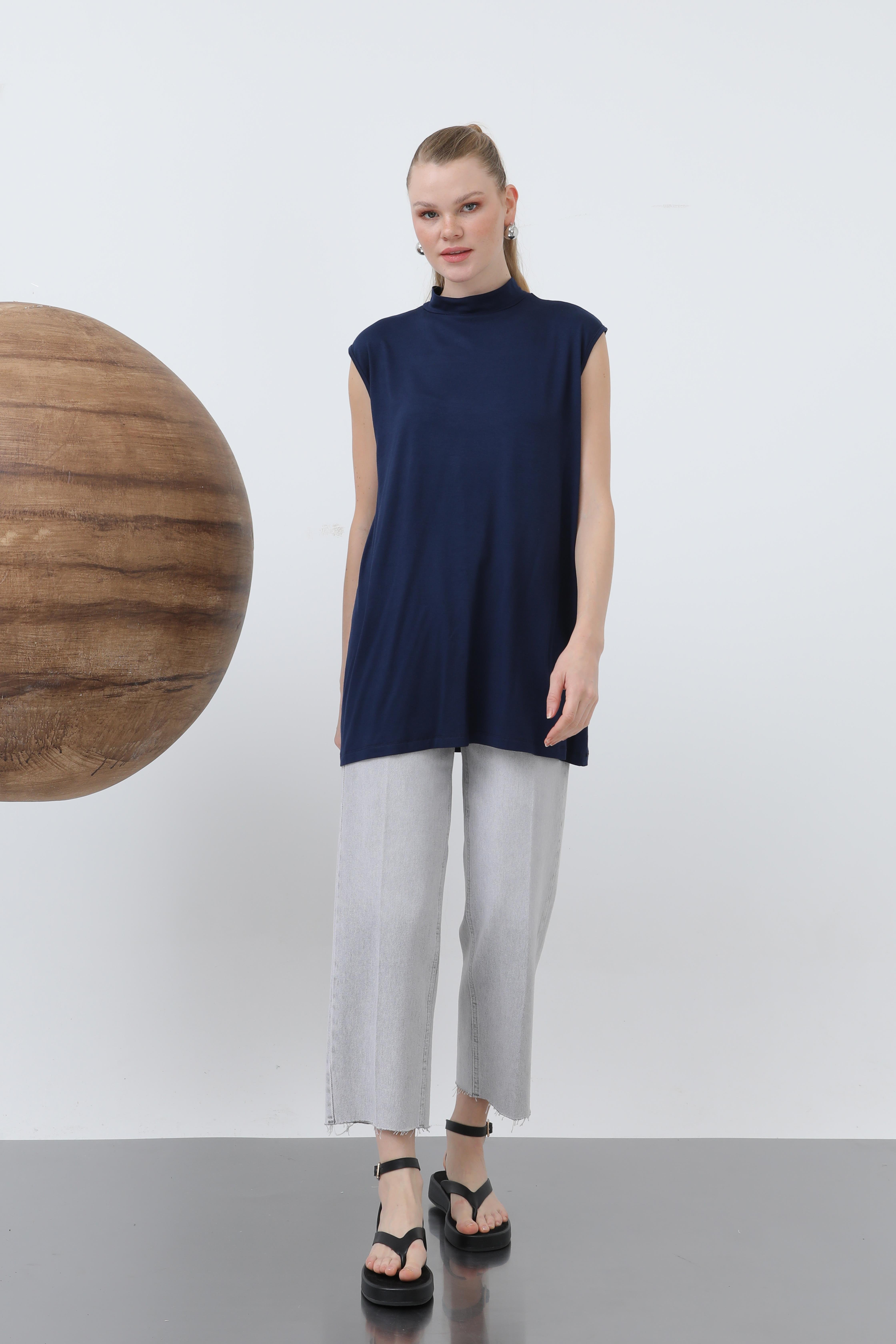 Sıfır Kol Bisiklet Yaka İçlik Tunik 40006 - F.Navy