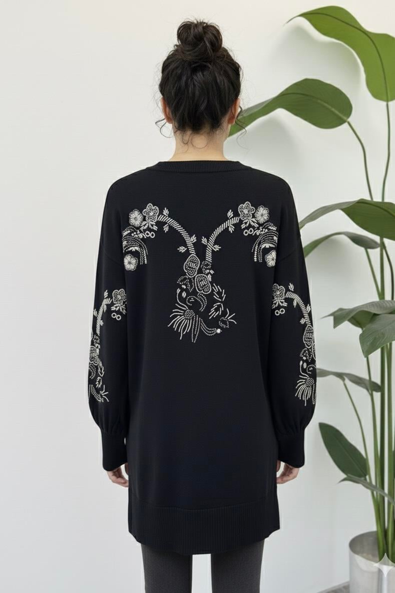 Sırt ve Kol İşlemeli Hırka 140497 - Siyah