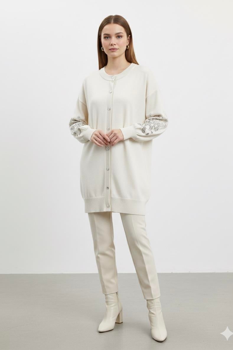 Sırt ve Kol İşlemeli Hırka 140497 - Vanilya (357280905)