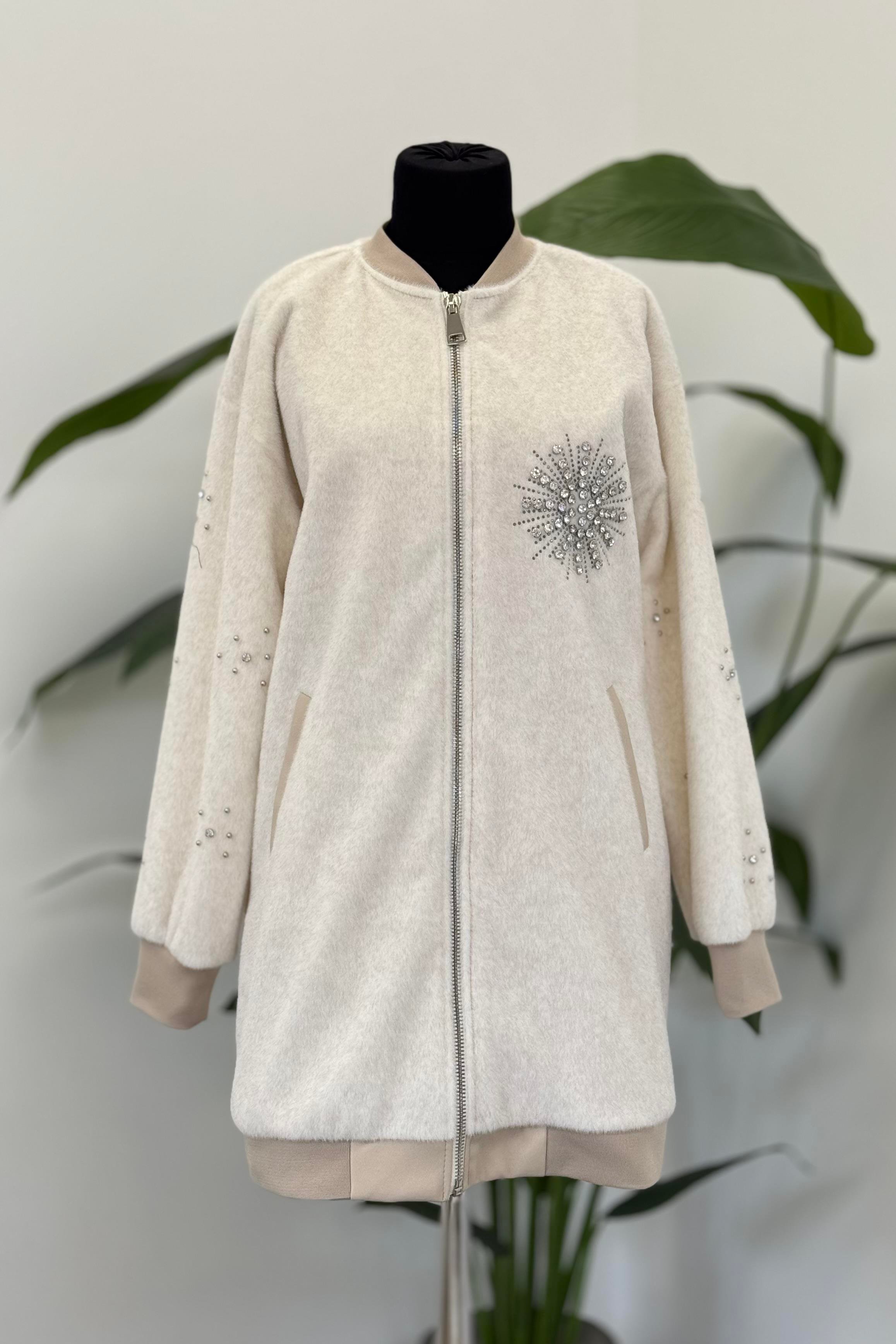 Taş İşlemeli Deri Detaylı Kap 1420 - Ekru (378307901)