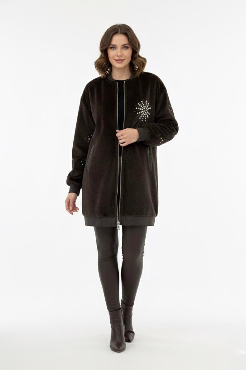 Taş İşlemeli Deri Detaylı Kap 1420 - Kahve (378307901)