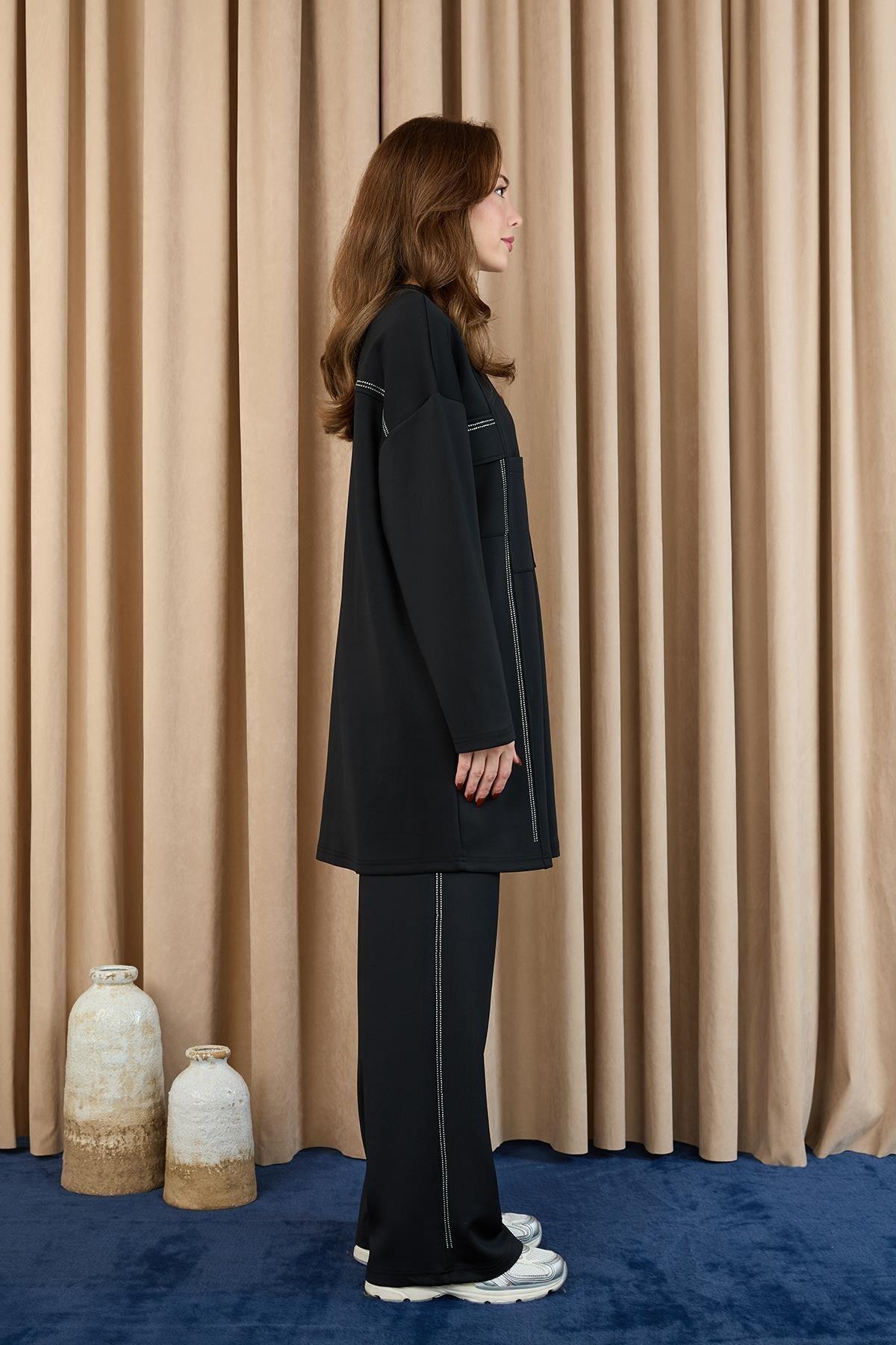Taş Şerit Aksesuarlı Pantolonlu Takım 14379 - Siyah