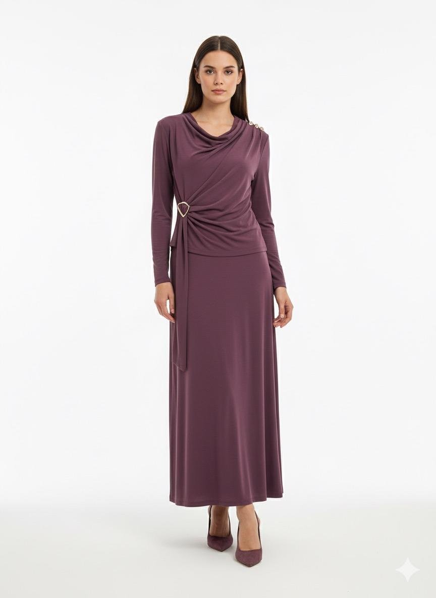 Tokalı Düğme ve Pile Detay Etekli Takım 0035977 - Bordo