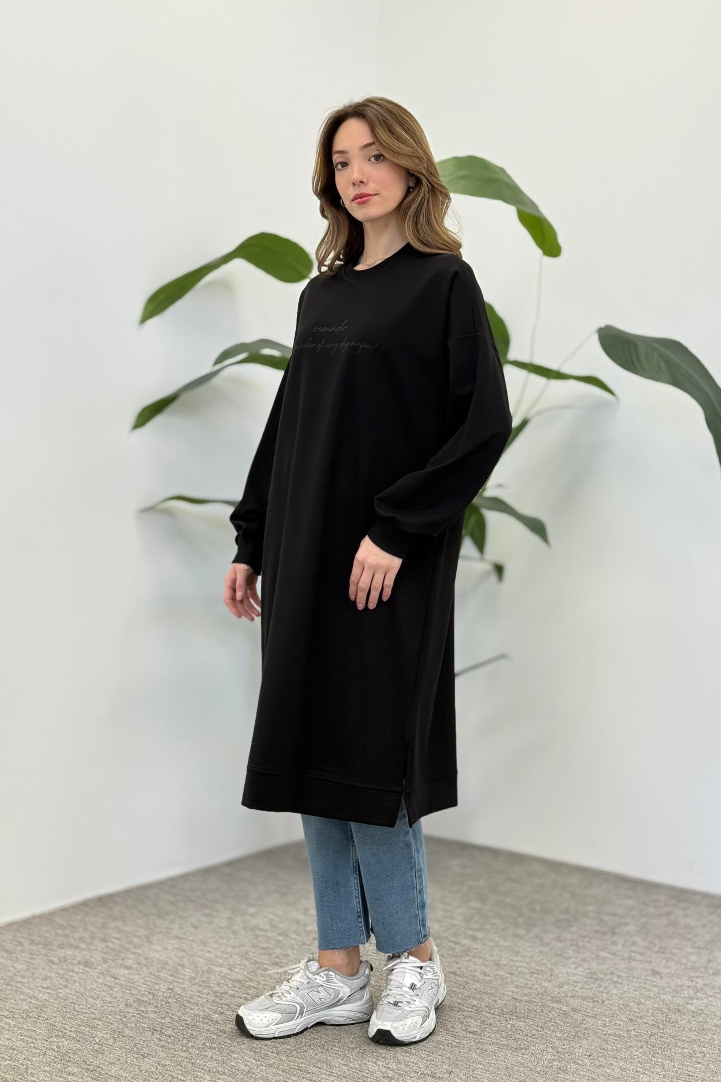 Tonaton Baskılı Uzun Sweat Tunik 0035331 - Siyah (362132900)