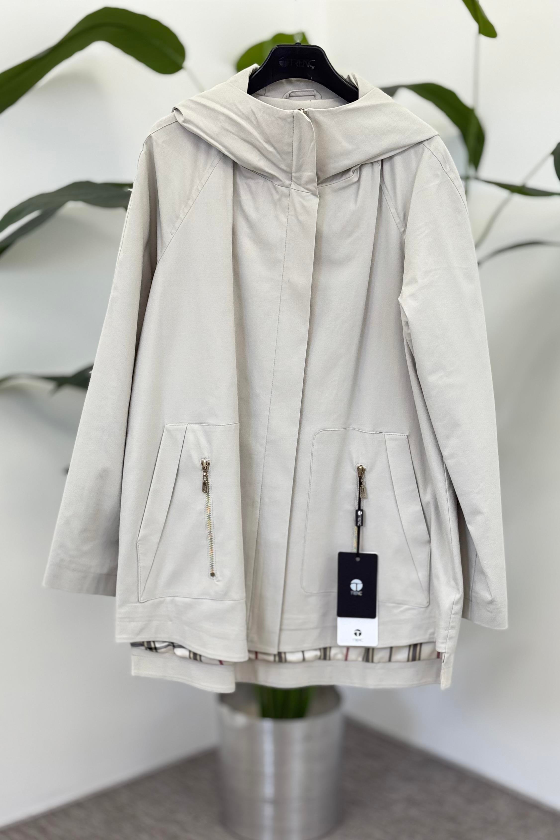 Trenç 3627 Cep Dik Fermuar Detaylı Trençkot - Taş