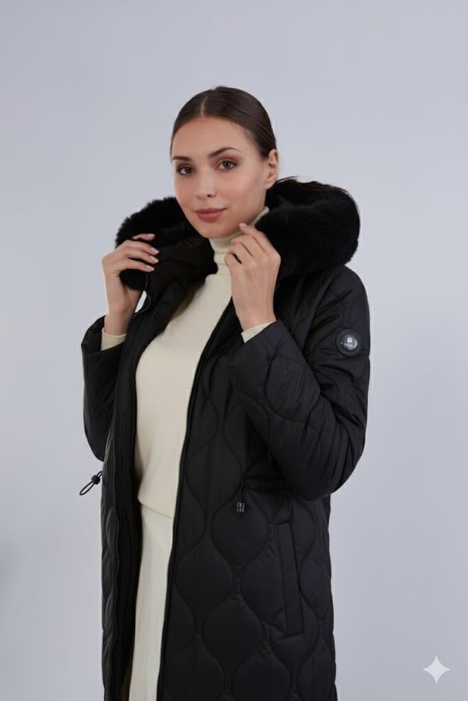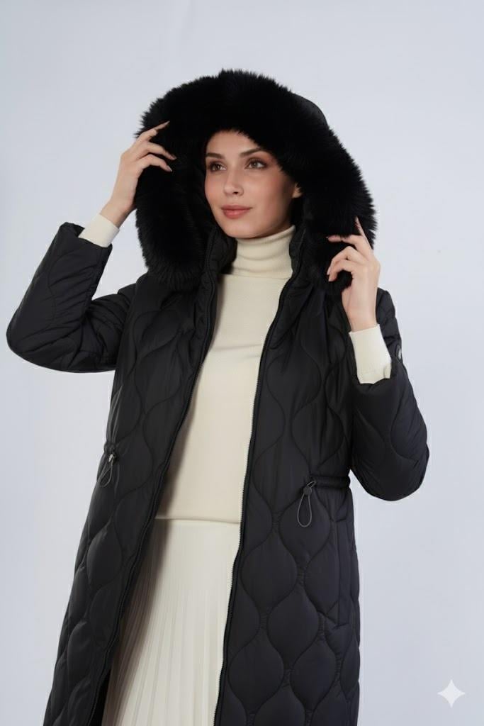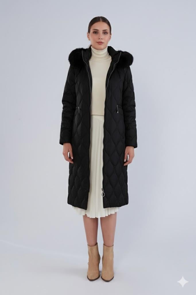 Trenç 5628 Bel Büzgü Detay Damla Desen Mont - Siyah