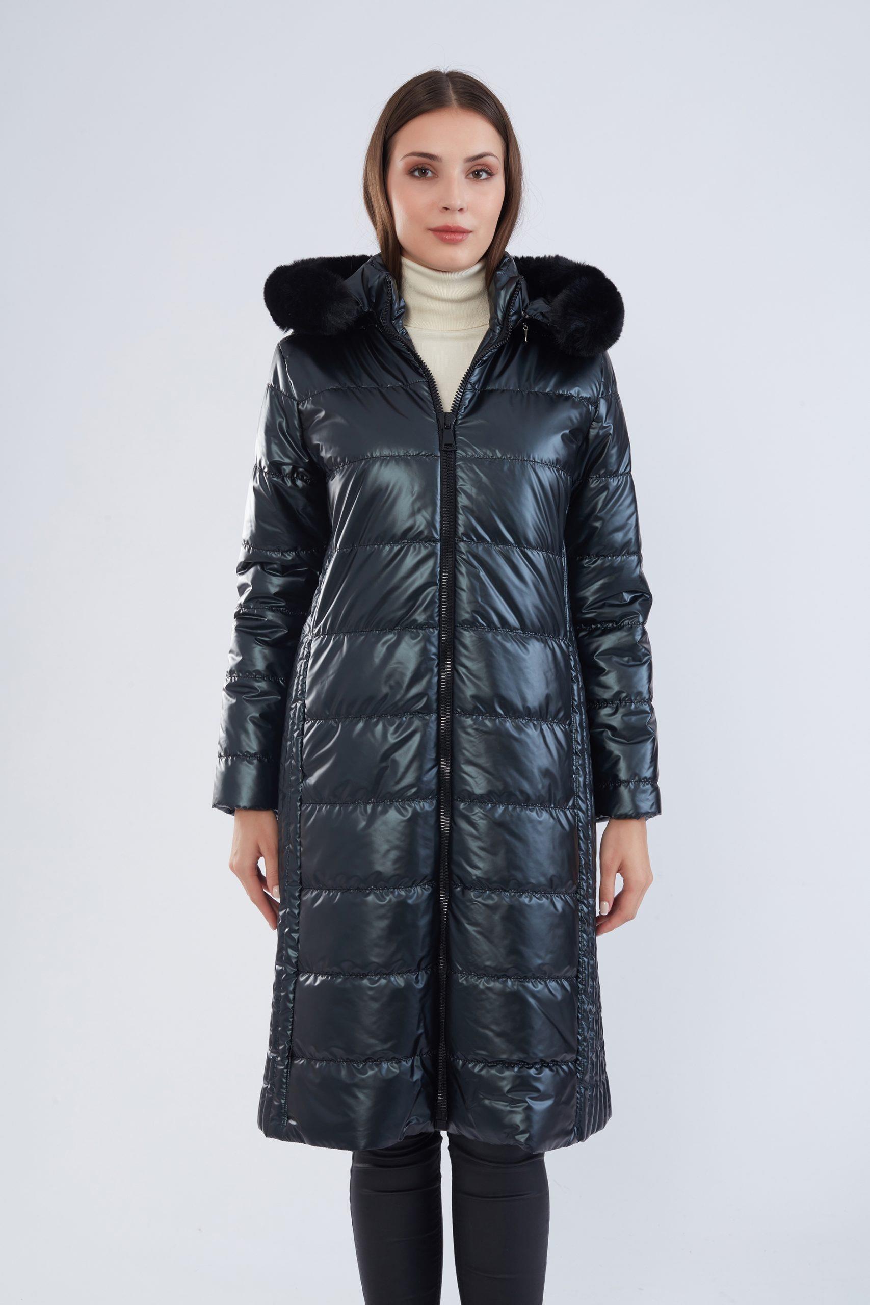 Trenç 5768 Yan Çizgi Dikiş Parlak Kumaştan Mont - Siyah