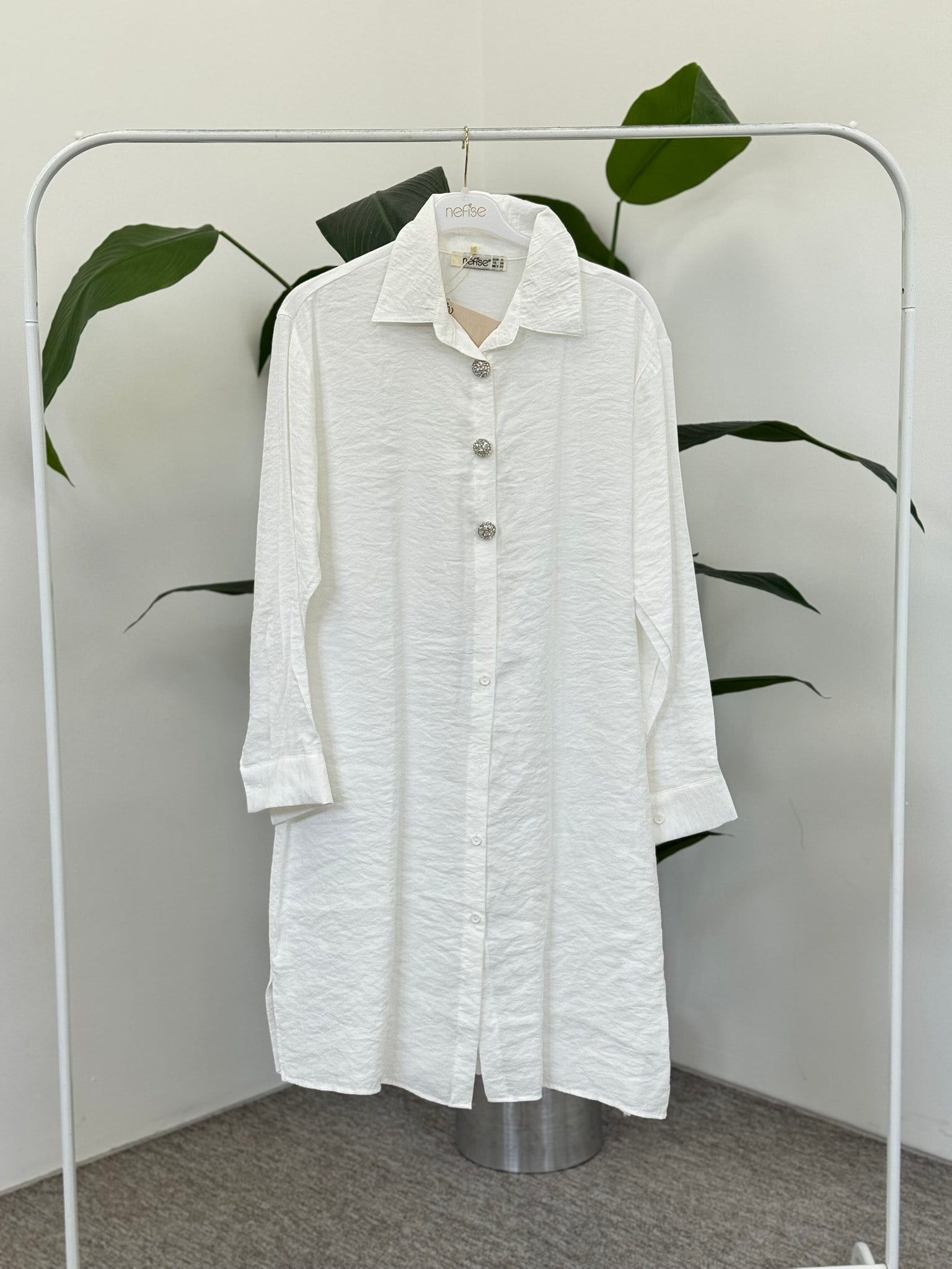 Üç Broş Detay Uzun Gömlek Tunik 260148 - Beyaz (462280102)