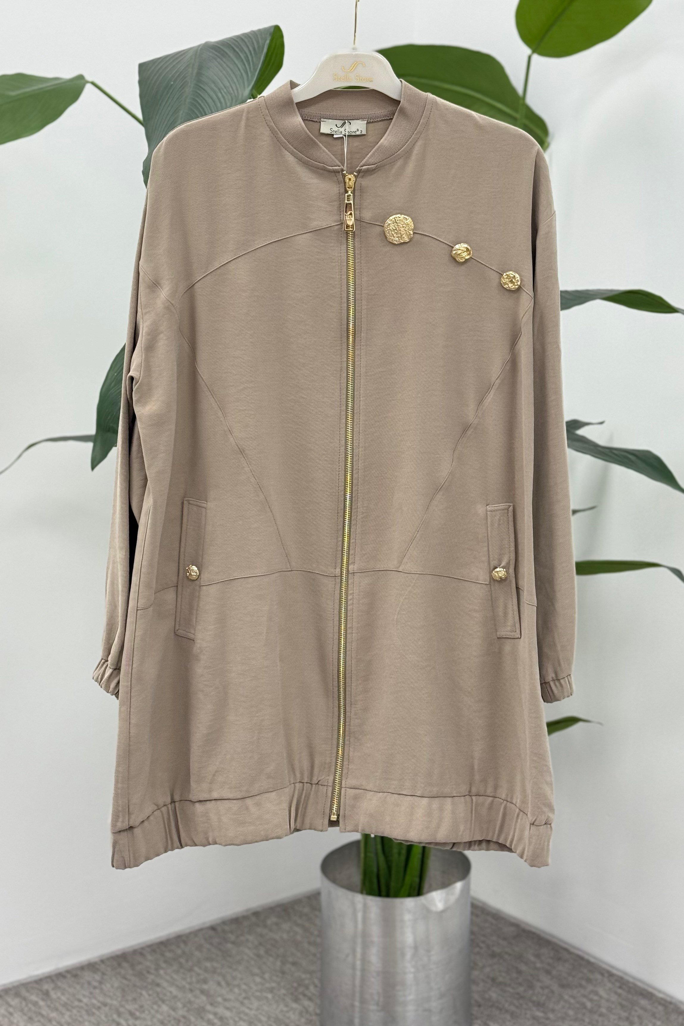 Üç Düğme Detay Fermuarlı Kap 1524 - Camel
