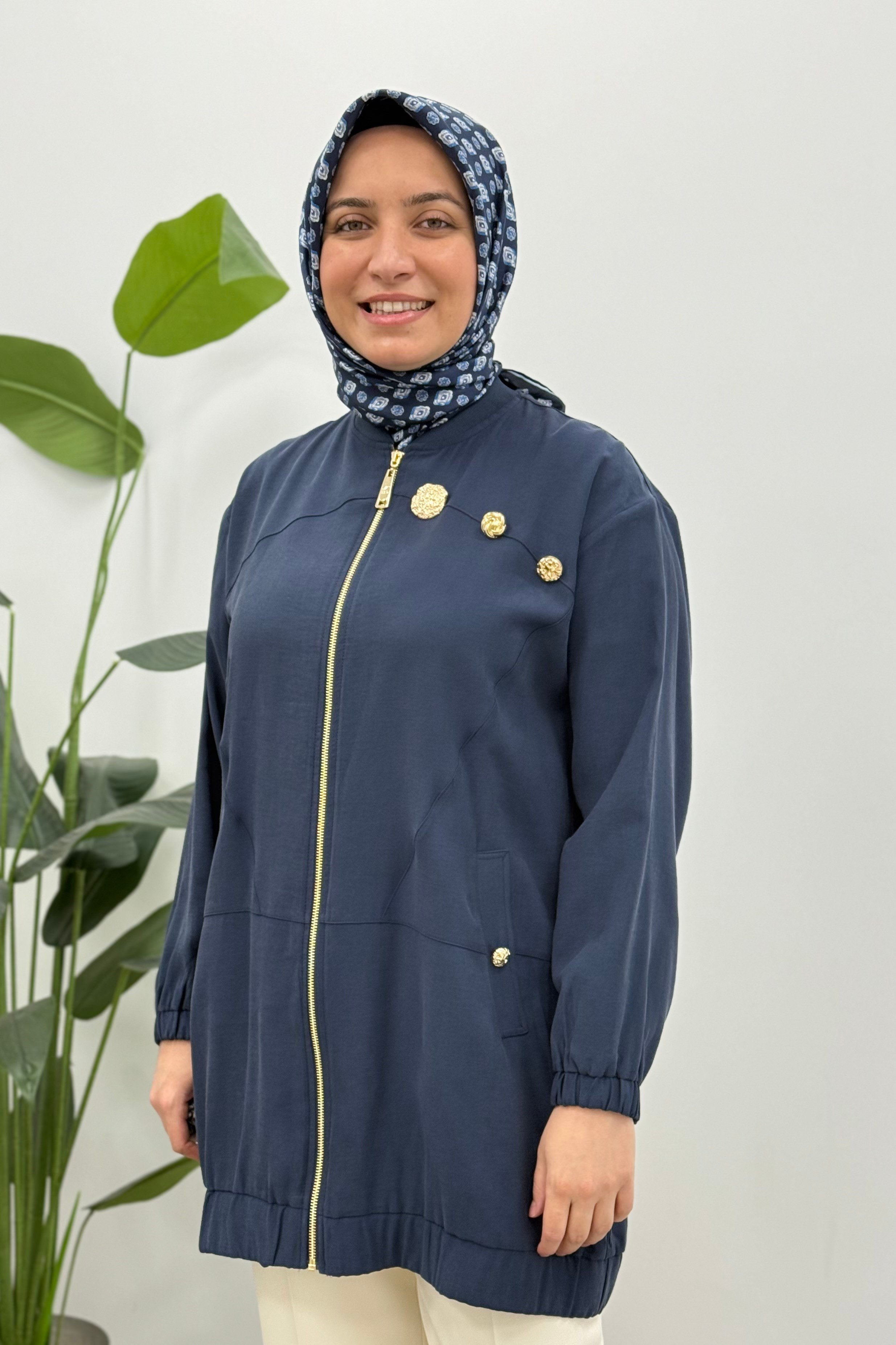 Üç Düğme Detay Fermuarlı Kap 1524 - Lacivert