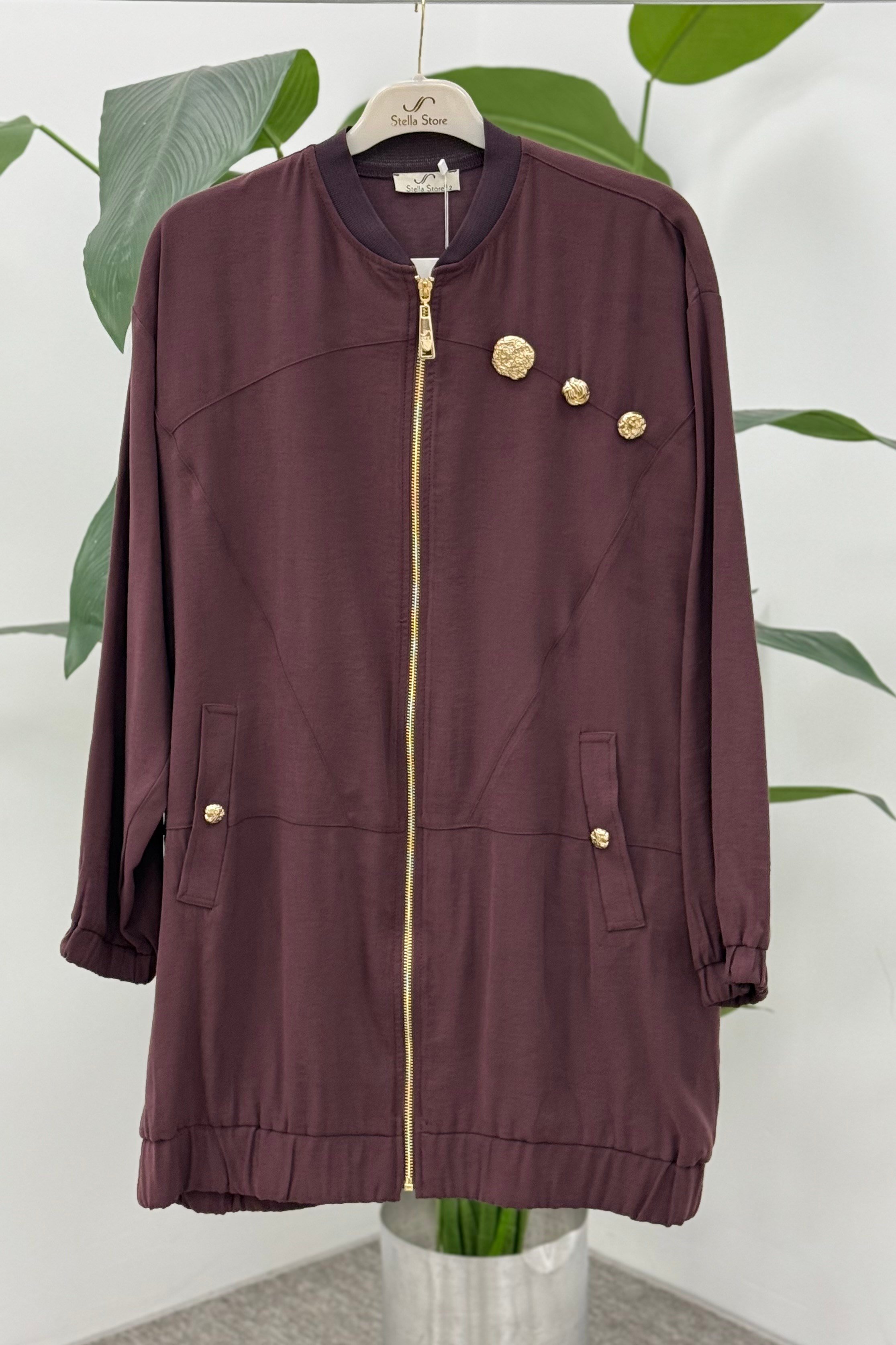 Üç Düğme Detay Fermuarlı Kap 1524 - Mürdüm