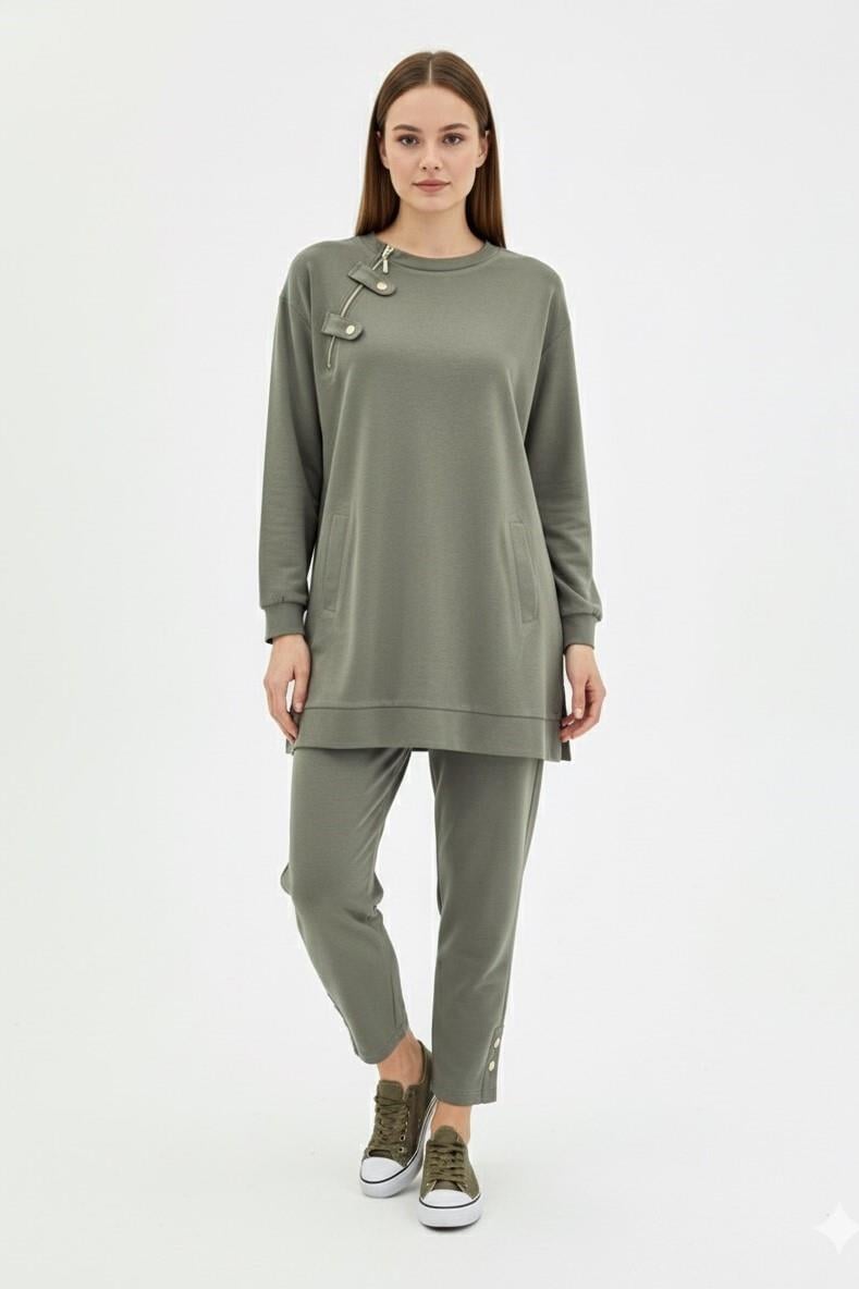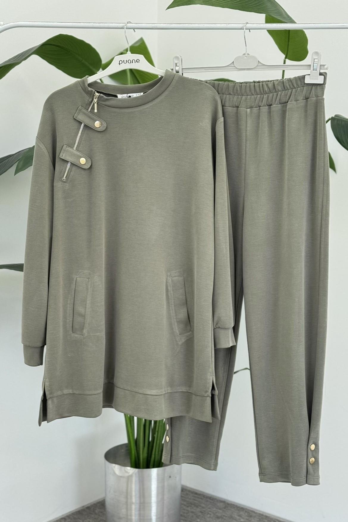 Yaka Fermuar Detay Pantolonlu Takım 14406 - Koyu Haki