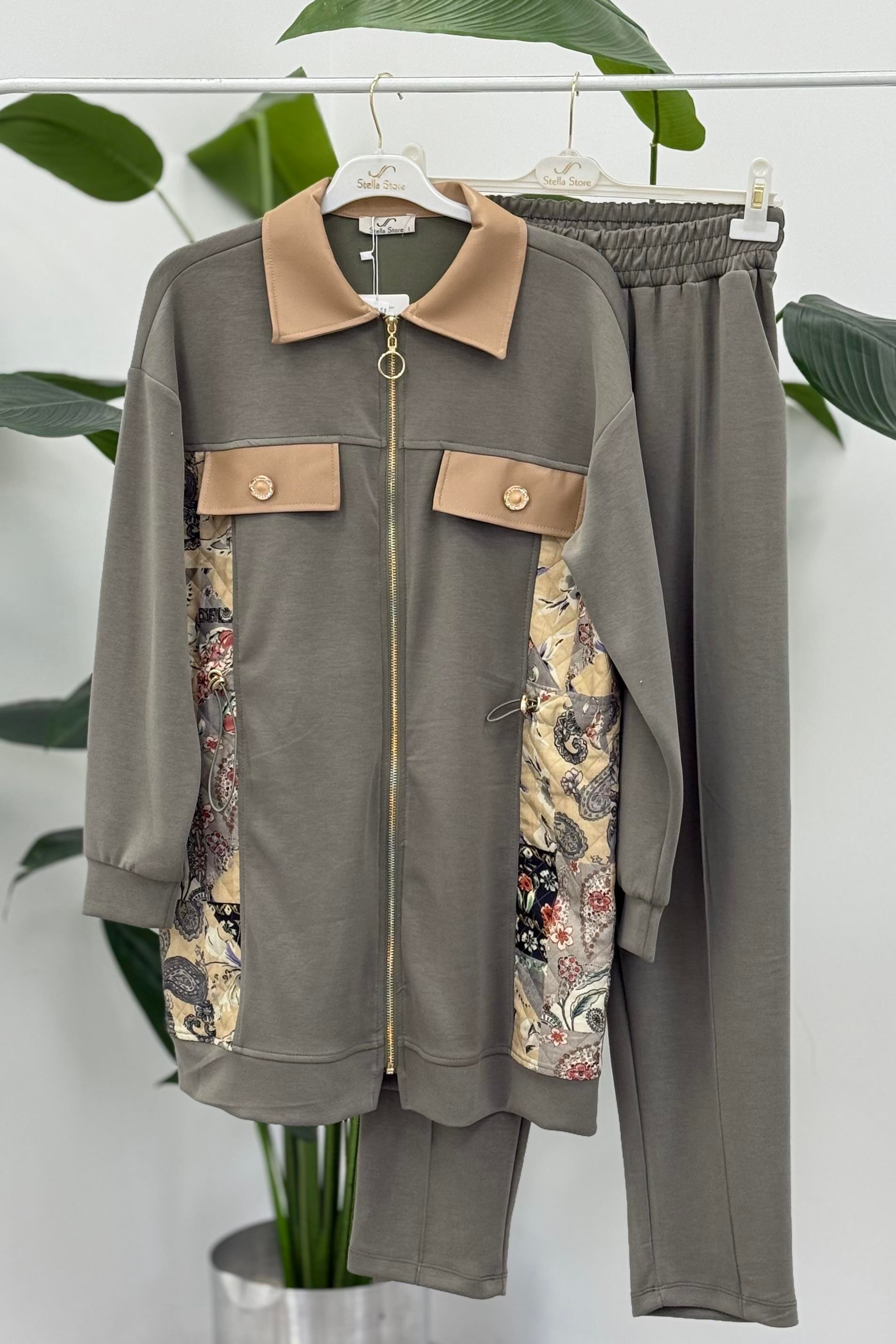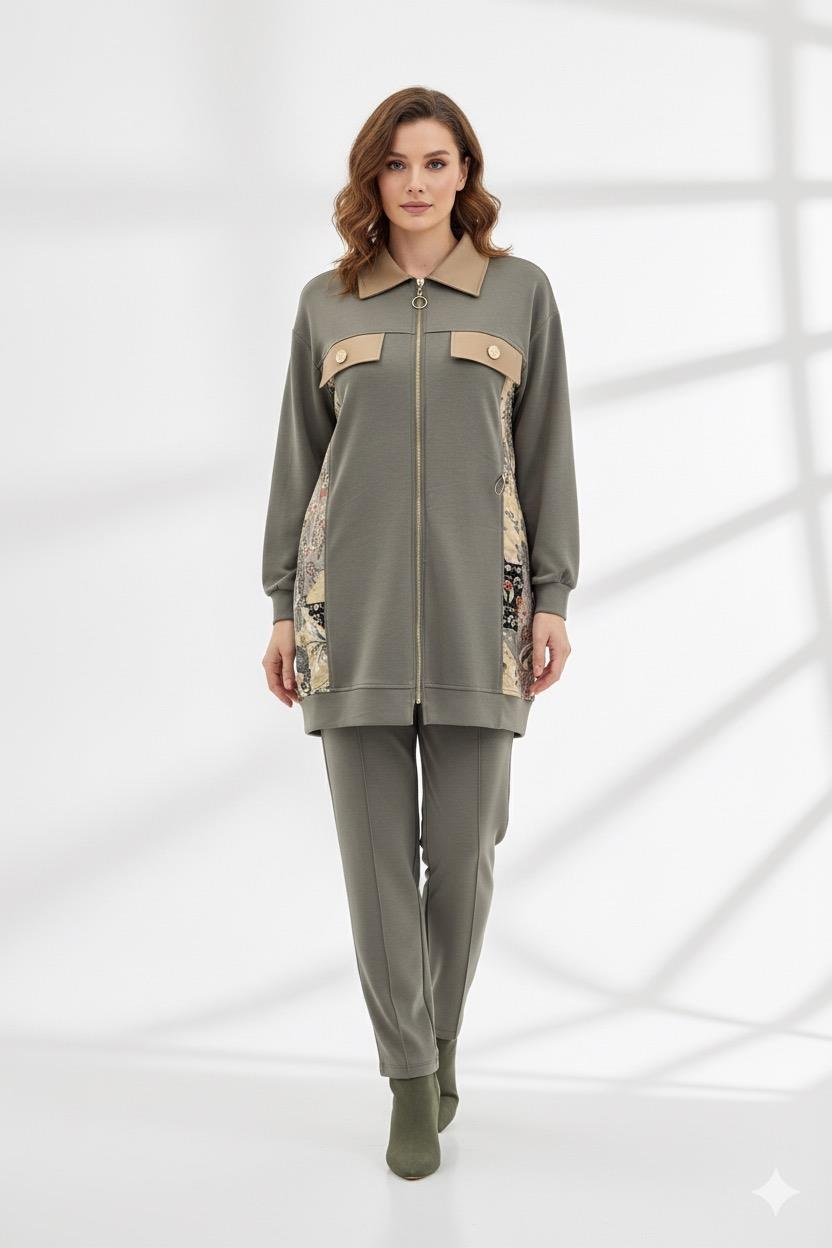 Yan Etnik Detay Pantolonlu Takım 3058 - Haki (350307921)
