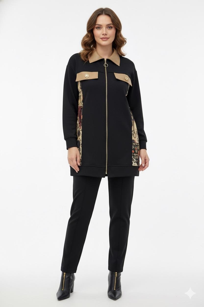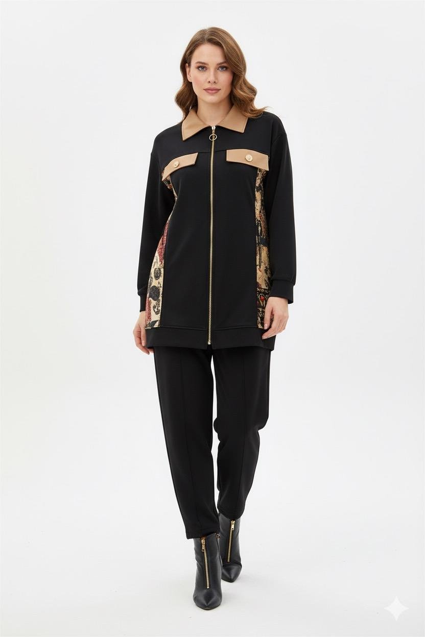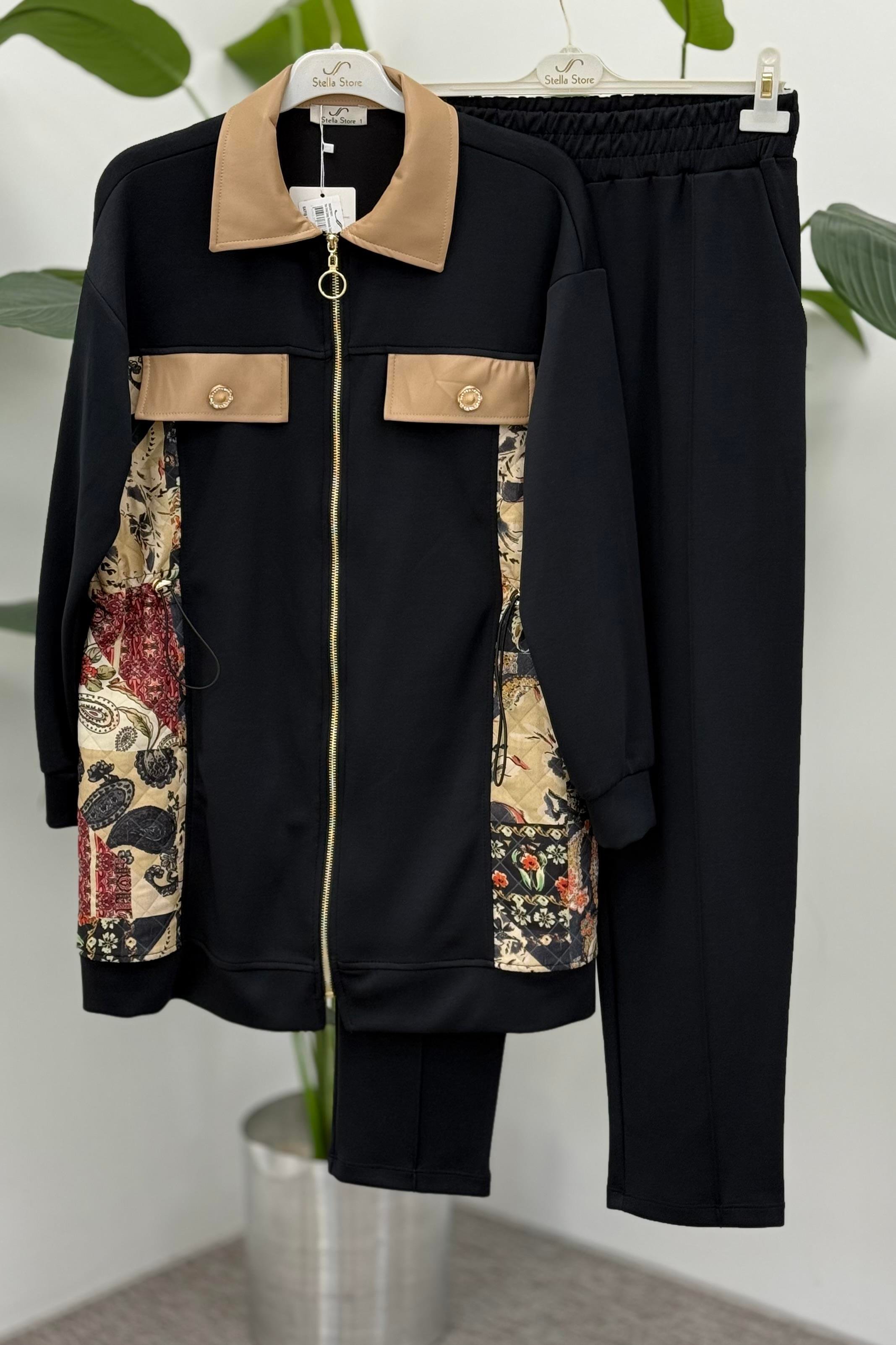 Yan Etnik Detay Pantolonlu Takım 3058 - Siyah (350307921)