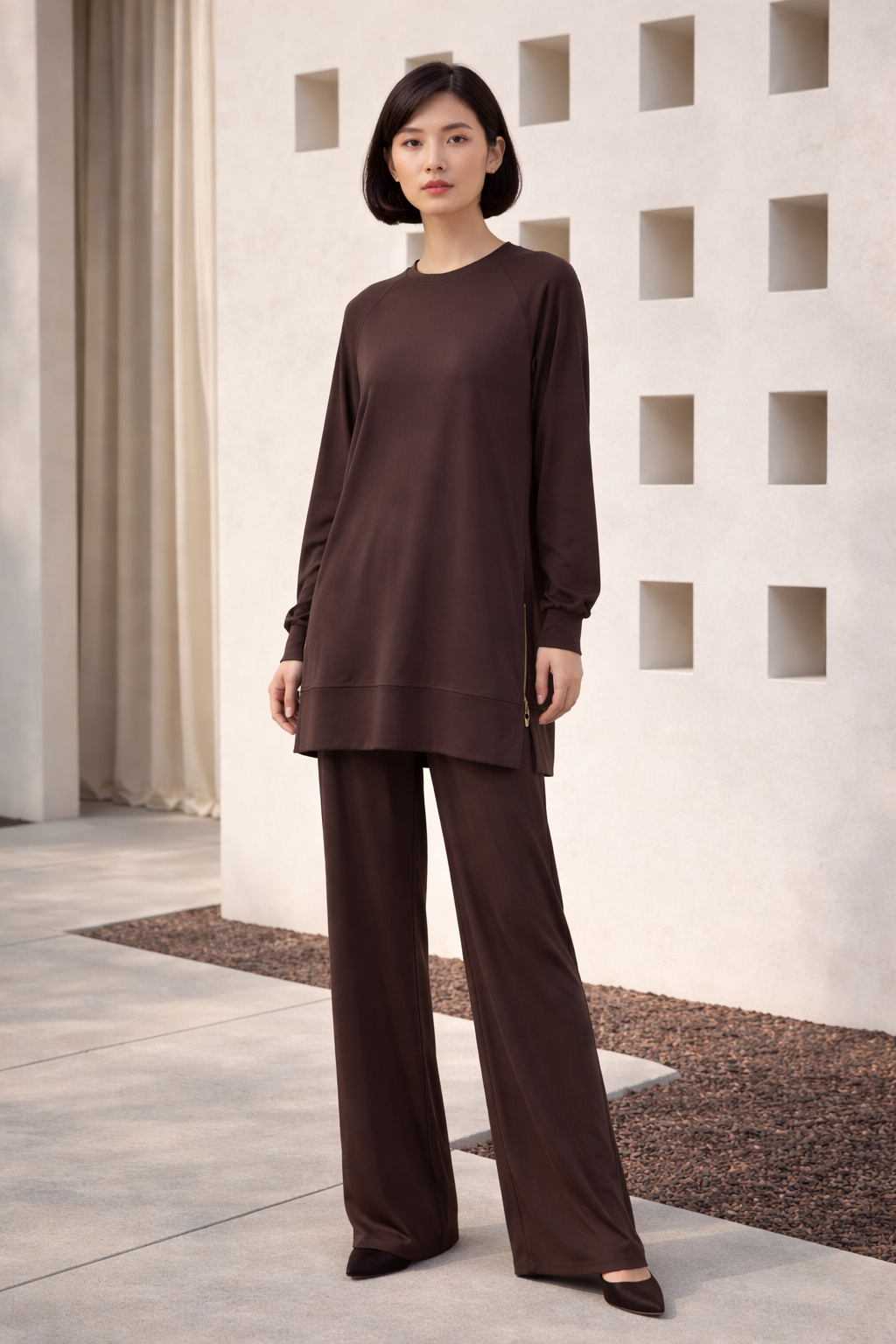 Yan Fermuar Detaylı Pantolonlu Takım 14470 - Browni (450251109)