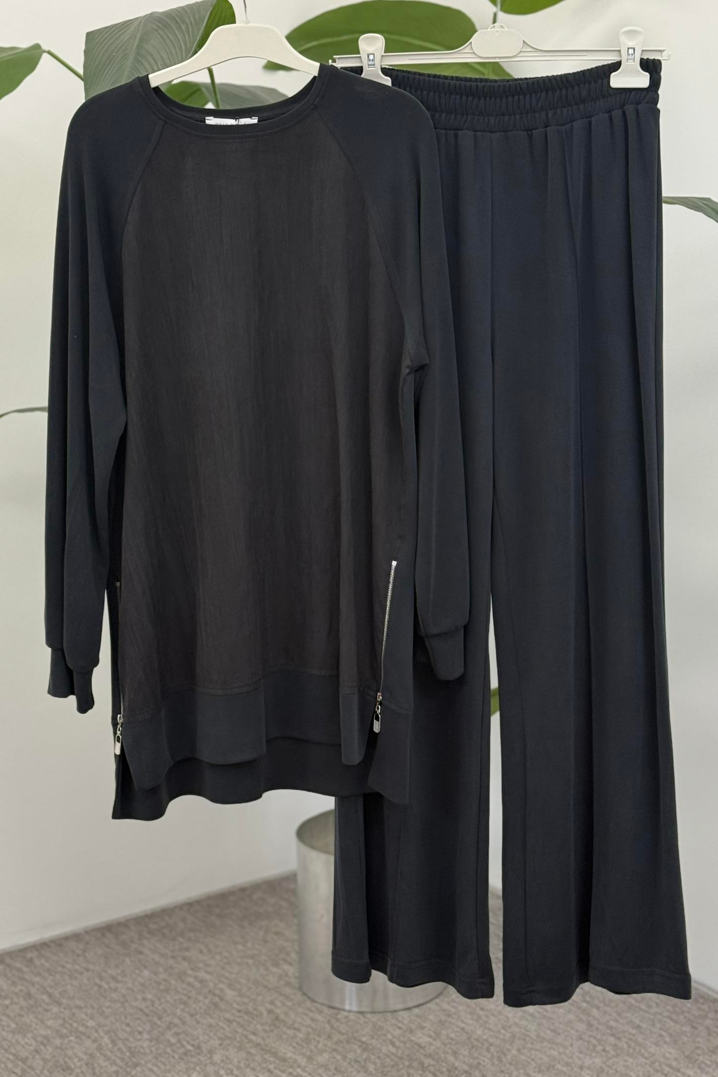 Yan Fermuar Detaylı Pantolonlu Takım 14470 - Siyah (450251109)