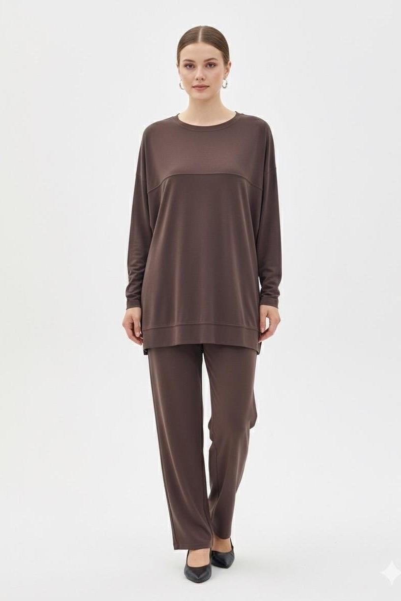 Yarasa Kol Modal S-Shırt 0035341 - Kahve (362132902)