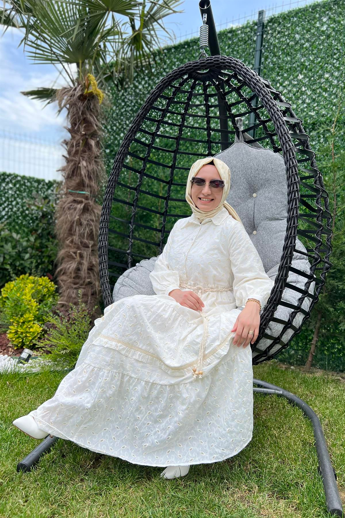 Yarım Düğmeli Halat Kemerli Elbise 8112 - Bej (363269405)