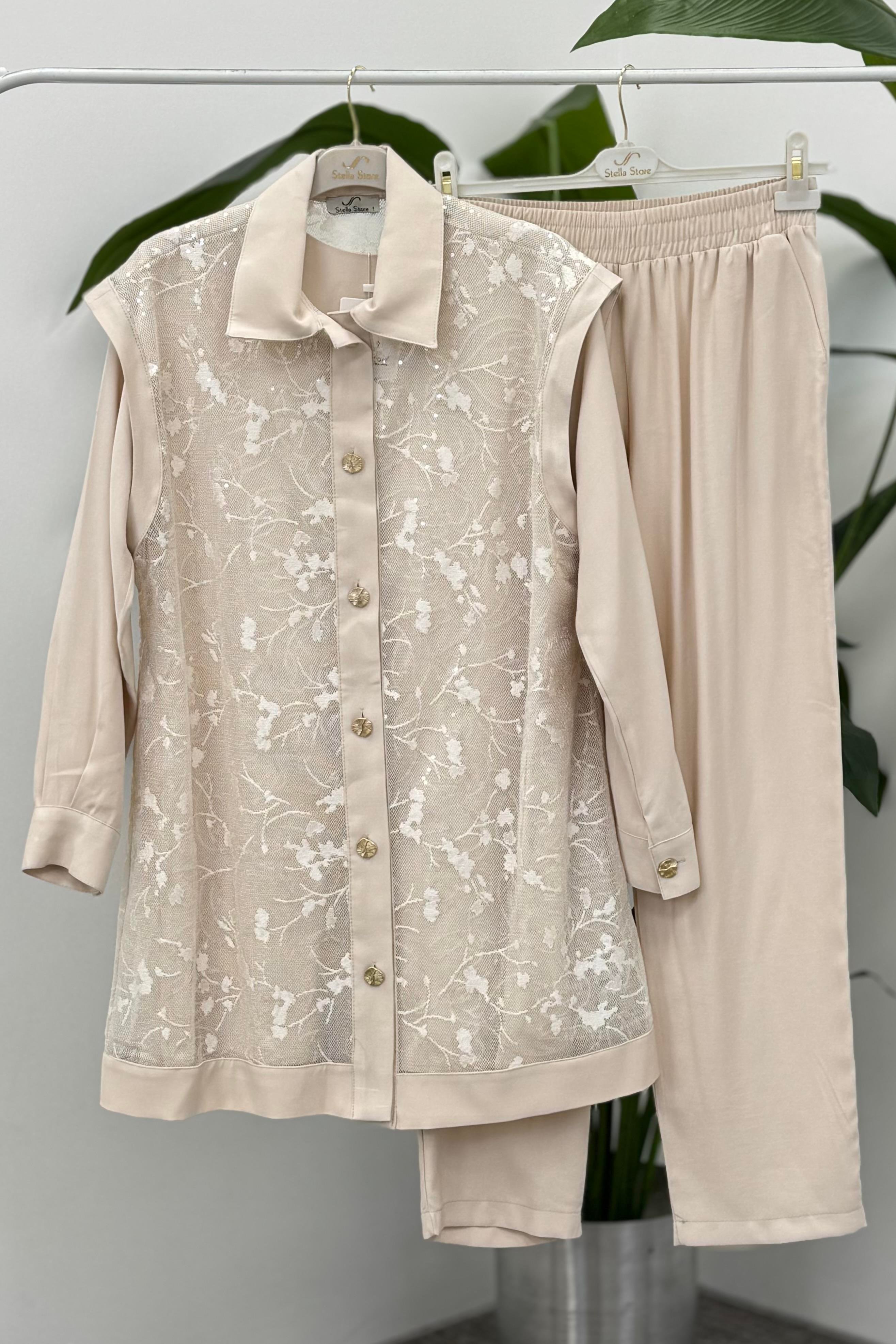 Yelekli Üçlü Pantolonlu Takım 1406 - Bej (350307917)