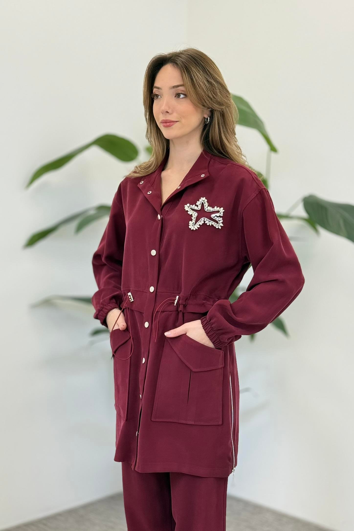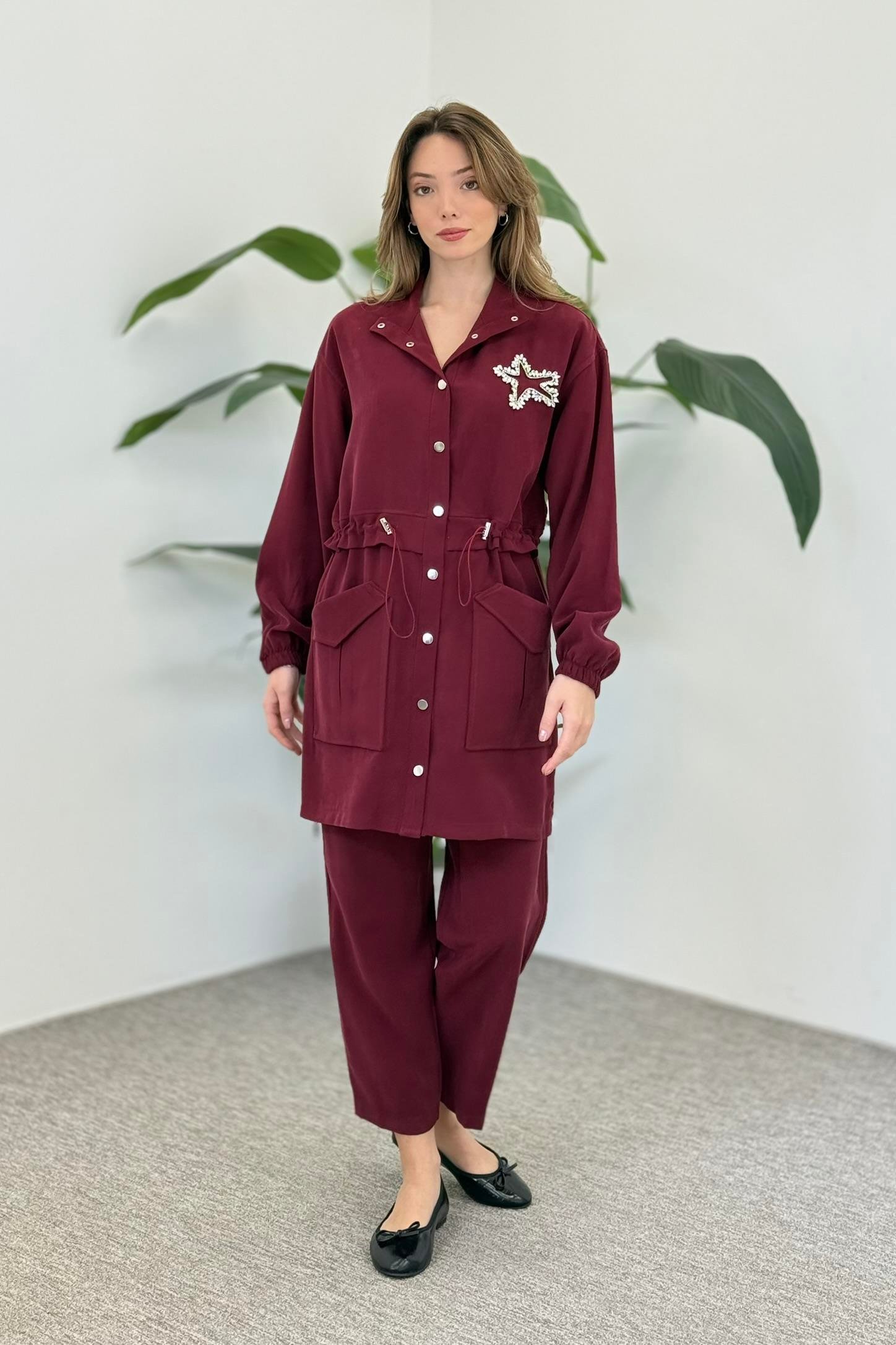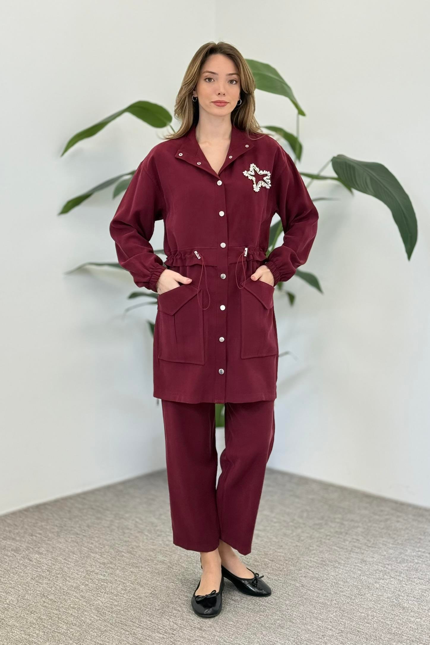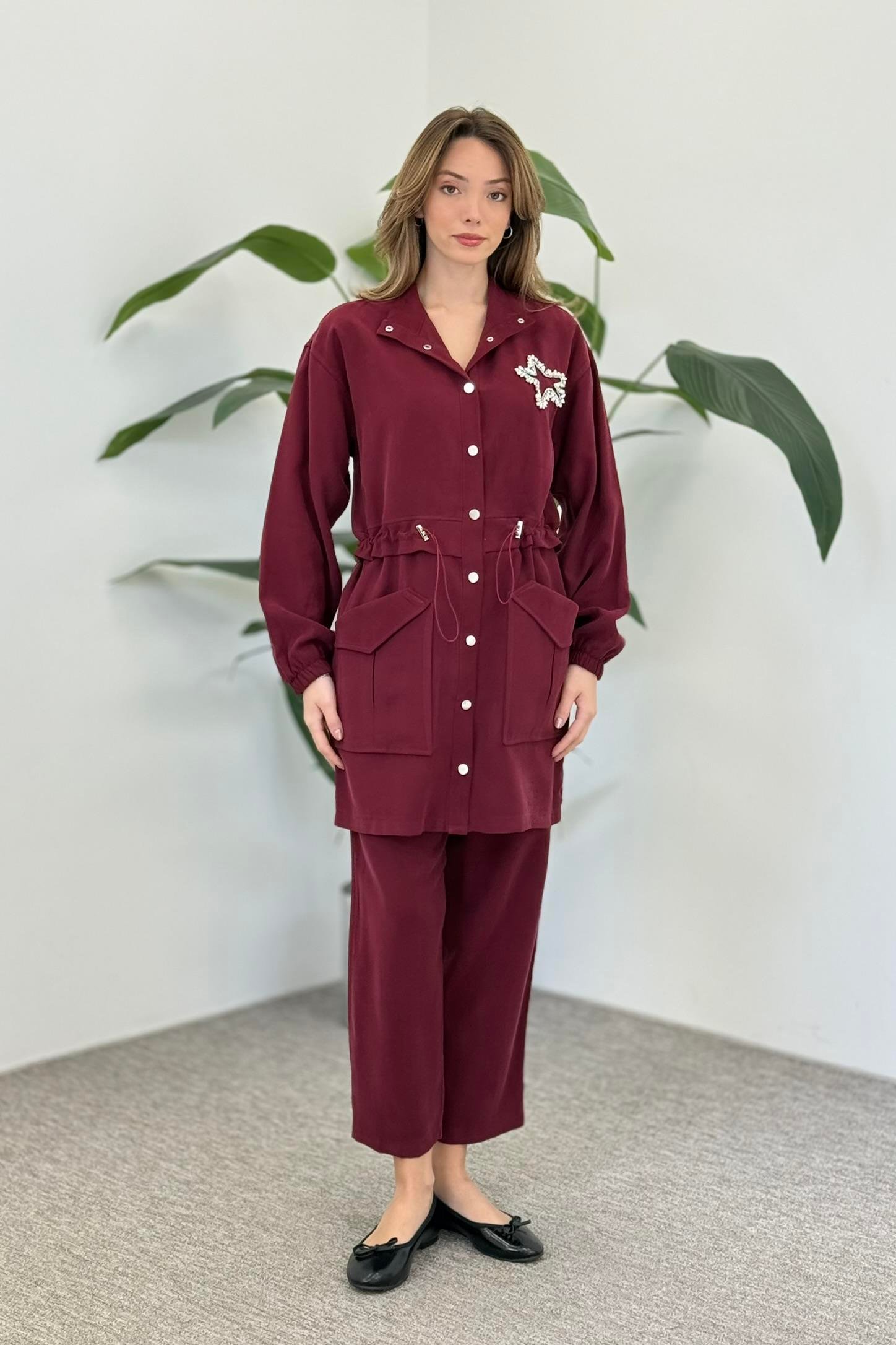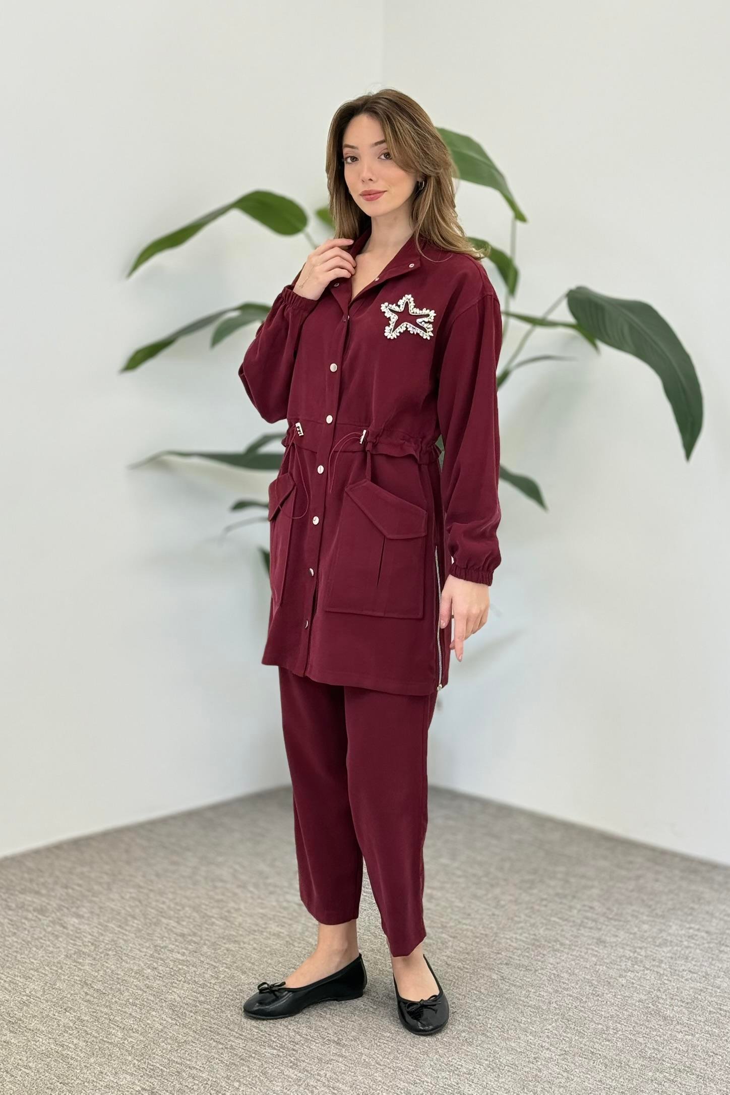 Yıldız Taş İşlemeli Pantolonlu Takım 1395 - Bordo (350307914)