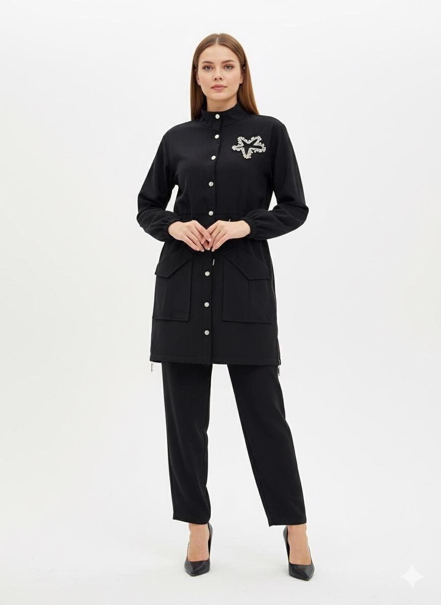 Yıldız Taş İşlemeli Pantolonlu Takım 1395 - Siyah